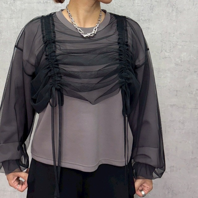 インスタライブでも詳しくご紹介しております↓ https://www.instagram.com/reel/DPYyAf2kys6/?igsh=YWl0M3psejluY2R5 (214R224) ☆BRAND TRANOI ☆SIZE 肩幅 51㎝ 袖丈 57㎝ 着丈 50㎝ チュール込み66㎝ 身幅 52㎝ ☆MATERIAL ポリエステル 50% コットン 44% ポリウレタン 6% 別布 ポリエステル 100% ・サイズやカラー等、多少誤差が生じる場合がござい。 商品画像は、お使いのモニターや閲覧環境(PC、タブレット、スマホ等)により、見え方が異なる場合がございますので、予めご了承ください。 ・イメージ違いやサイズ交換等、お客さまご都合による交換・返品はご対応出来かねます。 サイズ等ご確認の上、お買い求めください。 ・実店舗での同時販売の為、在庫数に行き違いが生じる場合がございます。予めご了承くださいませ。 ・当店は小さなお店でございます。 倉庫に沢山ある商品をこ発送する訳では無く、ご予約商品以外は店頭に陳列中の商品を検品してお送りさせて頂く事になります。 恐れいりますが、気になる方はご利用をお控え下さいませ。