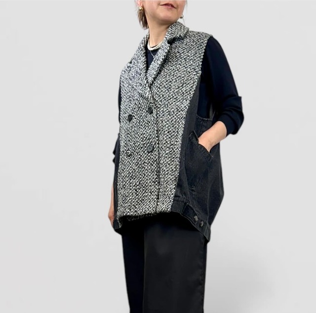 ウールミックスのソフトでふっくらとした表面感のあるツイードと相性の良いオンスのデニムのコンビーネーション♡ フロントはキレイ目テーラー、サイドからバックはカジュアルなデニムと表情のアンバランス感がポイントのミックスデザイン♪ サイドの斜めポケットがアクセント、バックタックによる立体シルエットがとっても素敵なアイテムです。 インスタライブでも詳しくご紹介しております↓ https://www.instagram.com/reel/DO7b4rGEyA-/?igsh=MWlxejk0dnB4ZWJ6YQ== https://www.instagram.com/reel/DPGvSI3E-kV/?igsh=MTlmNzh5dDZtNmRsbw== (552-24577) ☆BRAND QTUME ☆SIZE 38 着丈 78cm 身幅 67cm 肩幅 40㎝ ☆MATERIAL ポリエステル 70% 毛 30% 別布 綿 100% ・サイズやカラー等、多少誤差が生じる場合がござい。 商品画像は、お使いのモニターや閲覧環境(PC、タブレット、スマホ等)により、見え方が異なる場合がございますので、予めご了承ください。 ・イメージ違いやサイズ交換等、お客さまご都合による交換・返品はご対応出来かねます。 サイズ等ご確認の上、お買い求めください。 ・実店舗での同時販売の為、在庫数に行き違いが生じる場合がございます。予めご了承くださいませ。 ・当店は小さなお店でございます。 倉庫に沢山ある商品をこ発送する訳では無く、ご予約商品以外は店頭に陳列中の商品を検品してお送りさせて頂く事になります。 恐れいりますが、気になる方はご利用をお控え下さいませ。