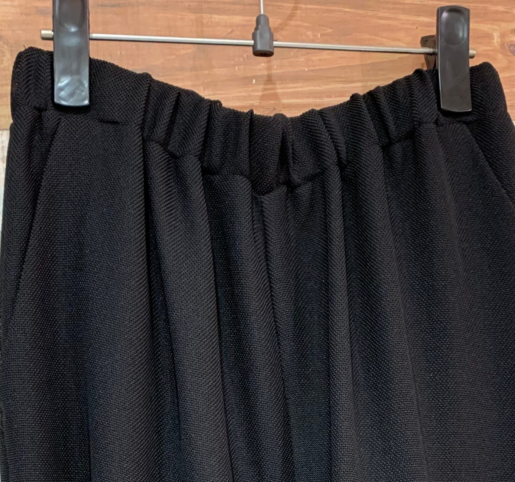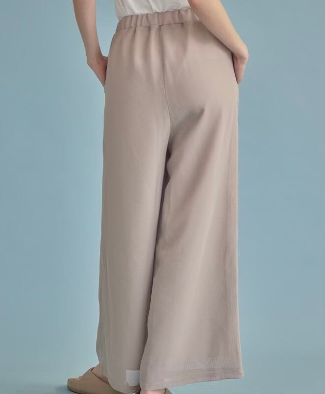 通気性も良くウエストゴムでらくちんな着心地と、トップスをイン、アウトしてもスタイリングが決まりやすい形に仕上がっています。