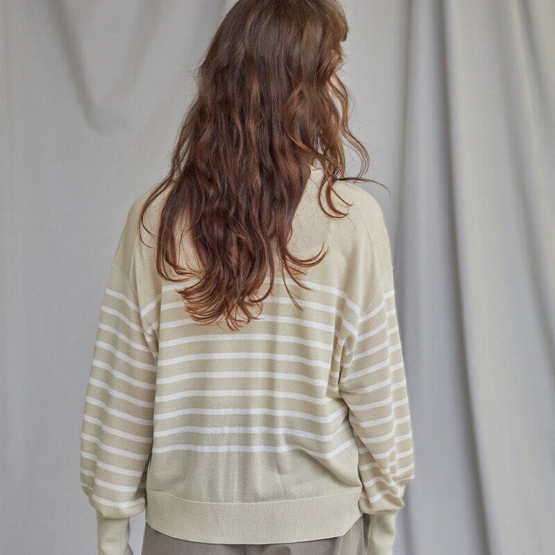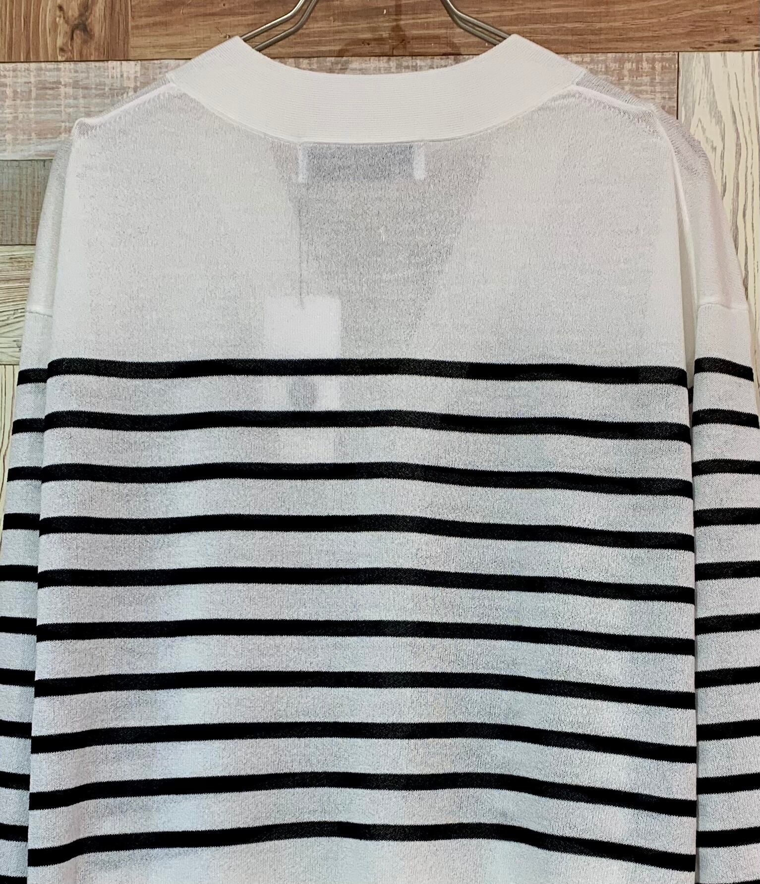 ボーダーがスタイリングのアクセントになるカーディガン。