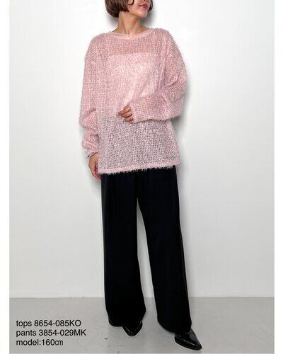 チュール素材にフェザーライクが編みこまれた素材が特徴的なオーバーカットソーになります。