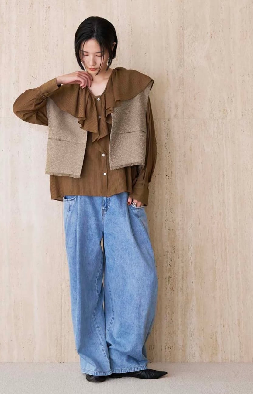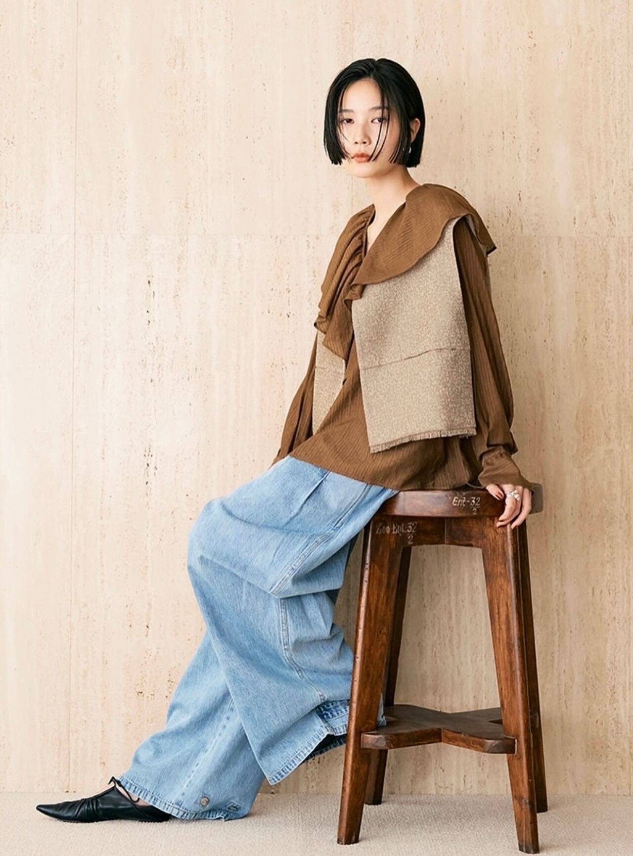 羽織りやベストの下にレイヤードするだけで、いつもと違うスタイリングになります。