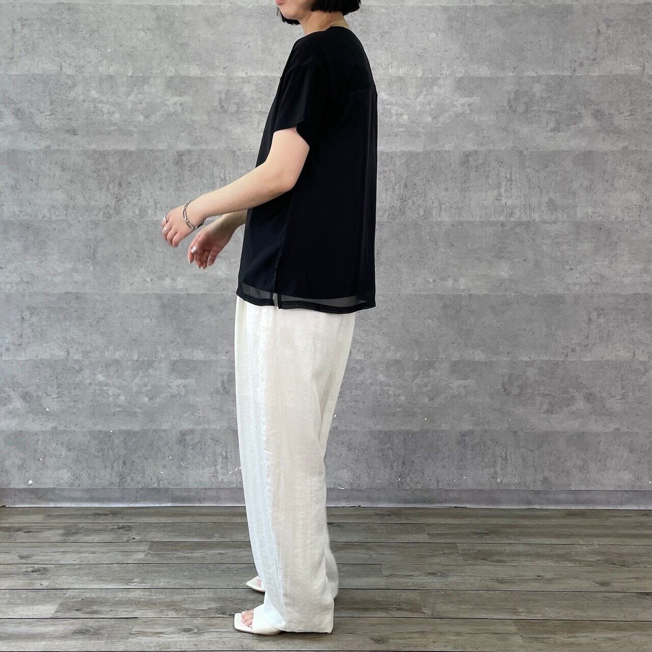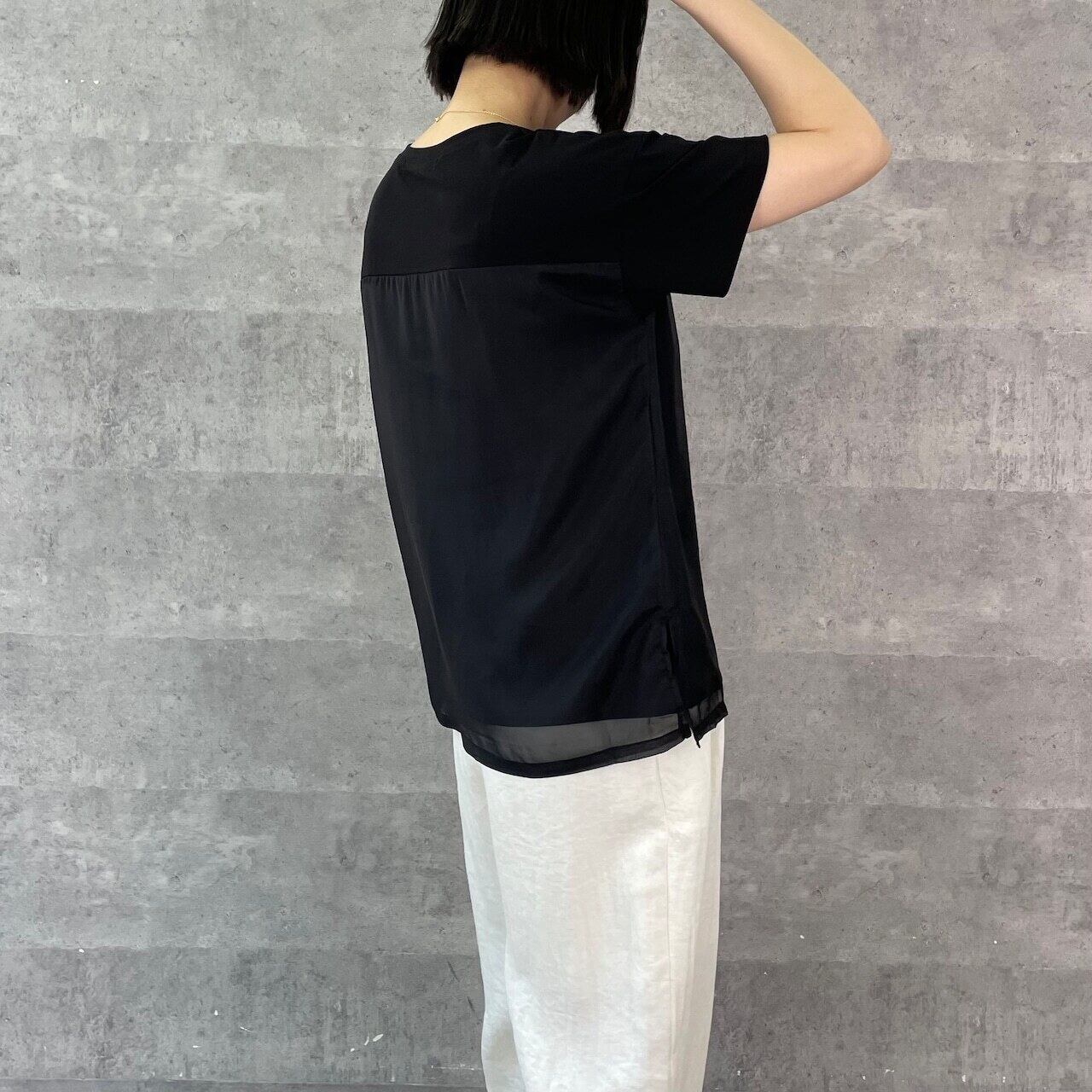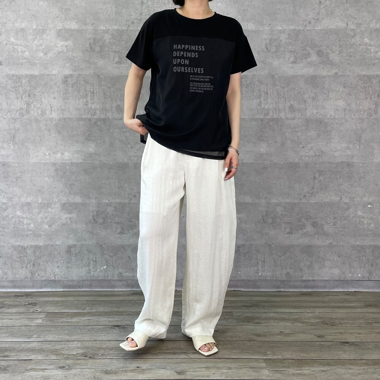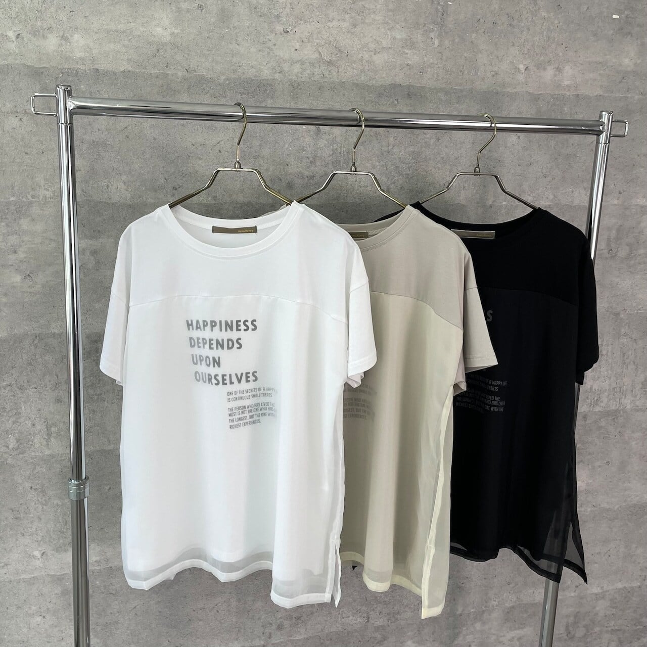 透け感が涼し気で女性らしいシアー生地を重ねた新感覚ロゴT。