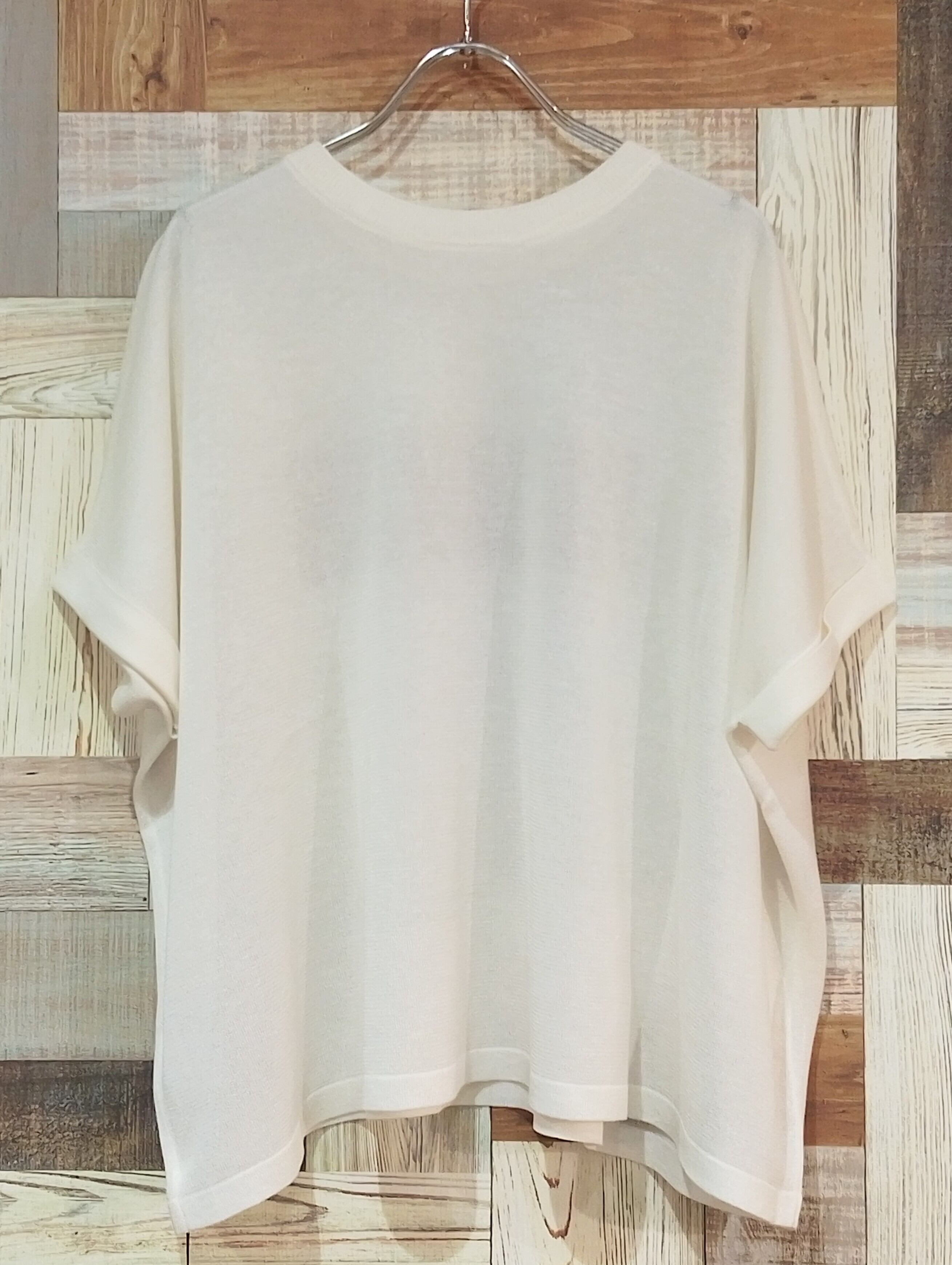 少し透け感のでる糸を使用した、インターシャロゴニットトップス 。