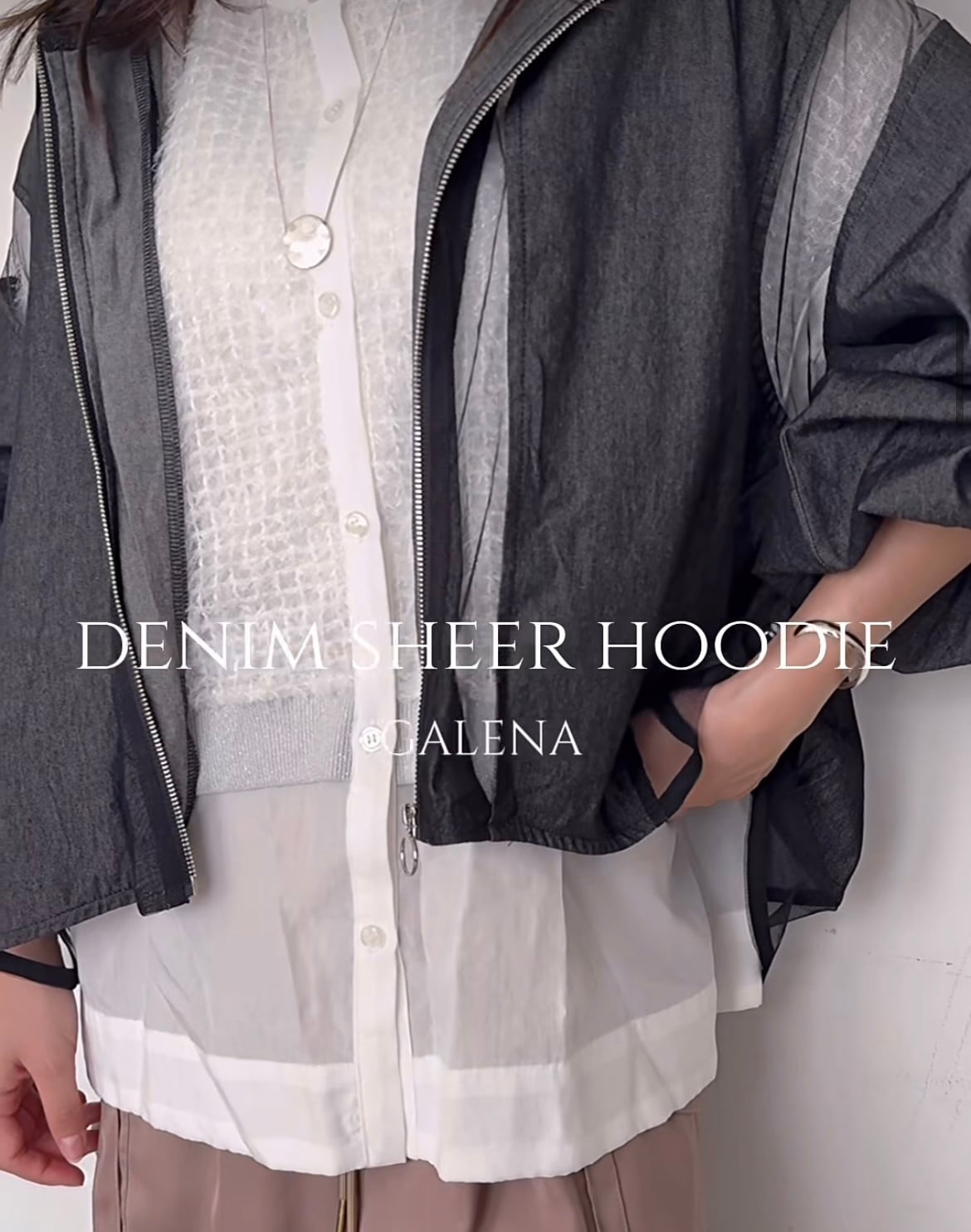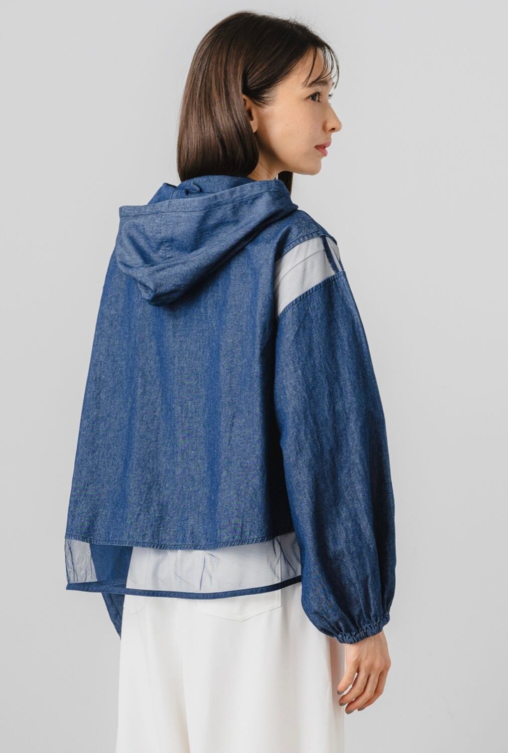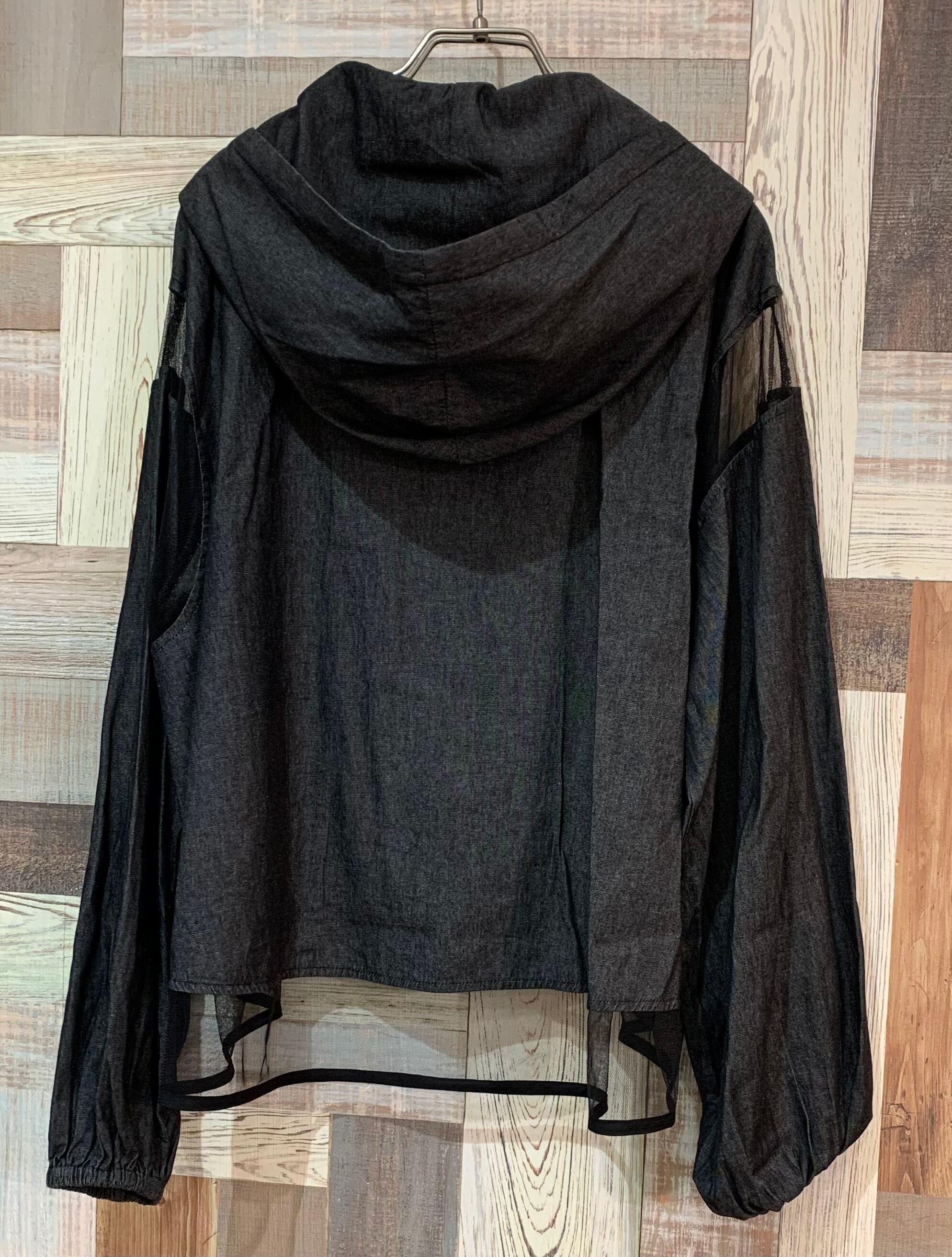 夏の暑い日にも涼しく着られるシアー切り替えパーカー。