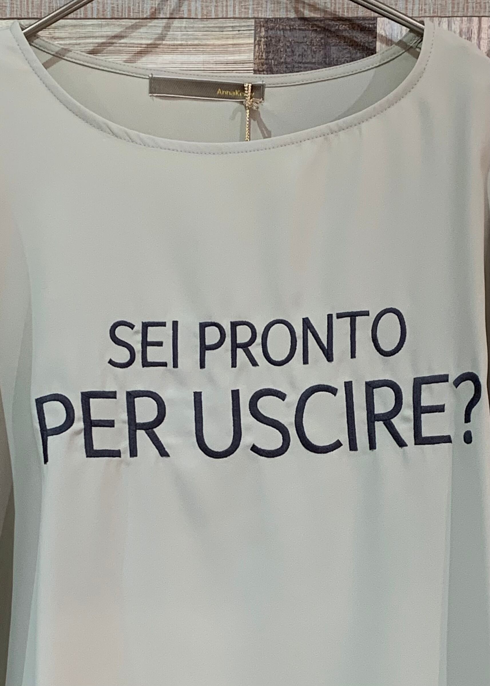 定番人気のデシンブラウスに刺繍ロゴをデザインしたブラウス♪