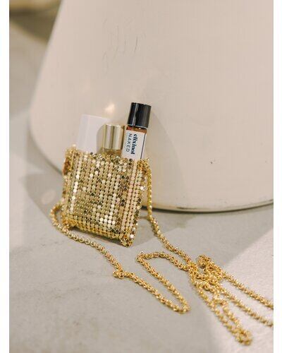 小ぶりすぎるサイズ感が目を引くミニバッグはメタル素材の布を使用したアイキャッチなアイテムです。