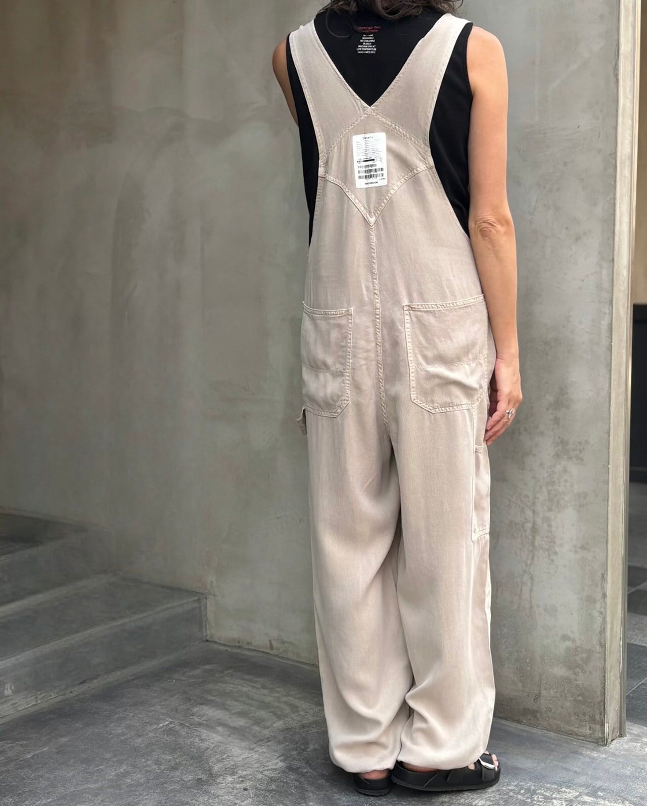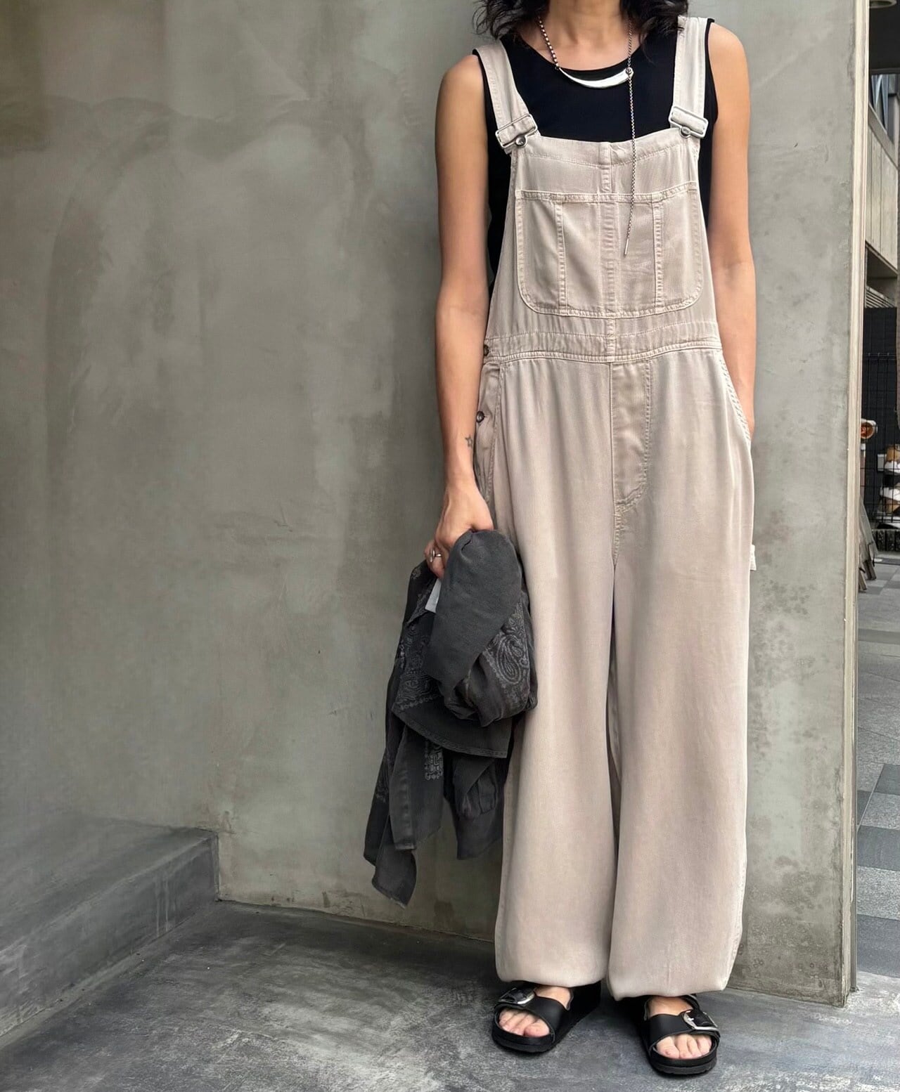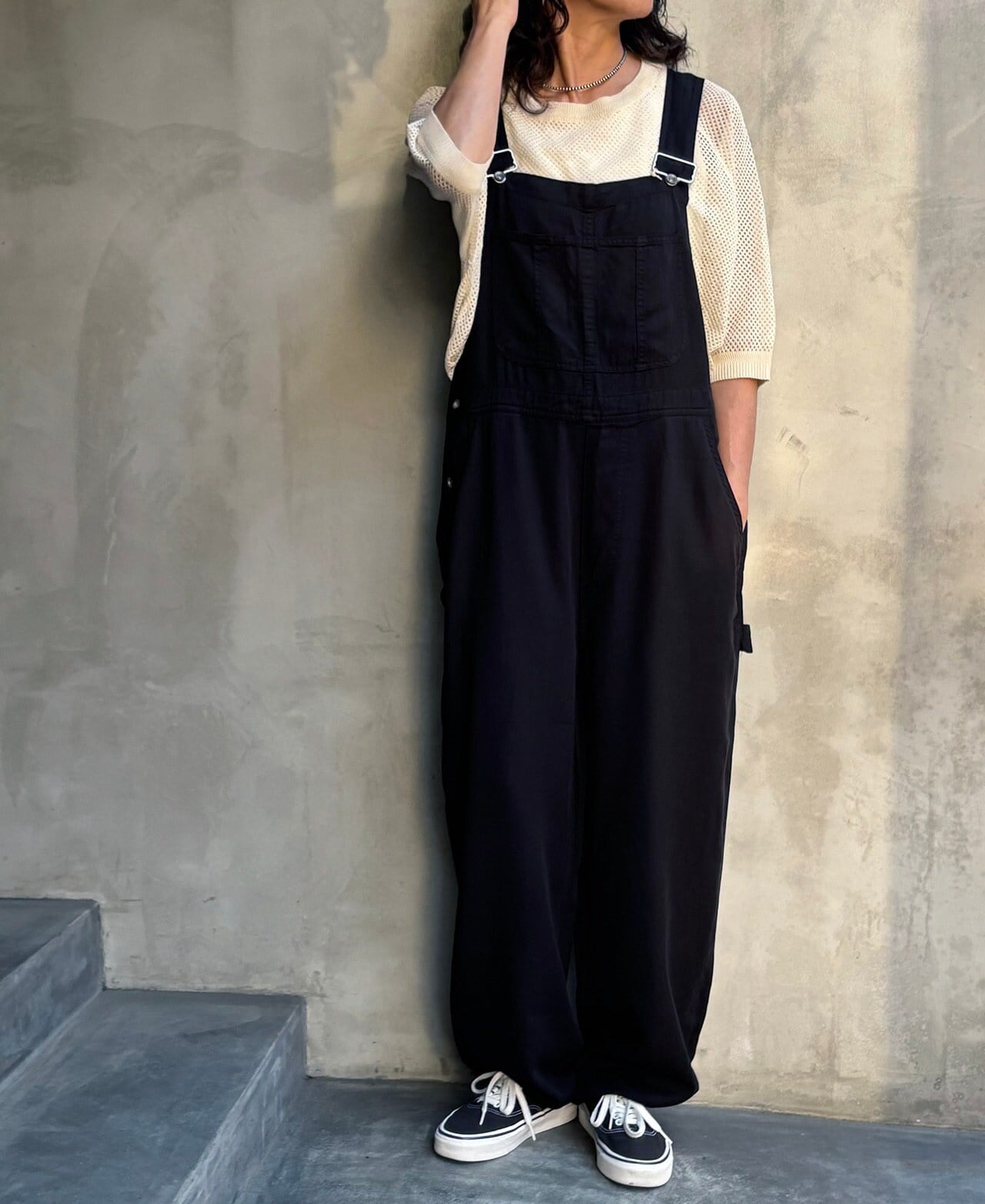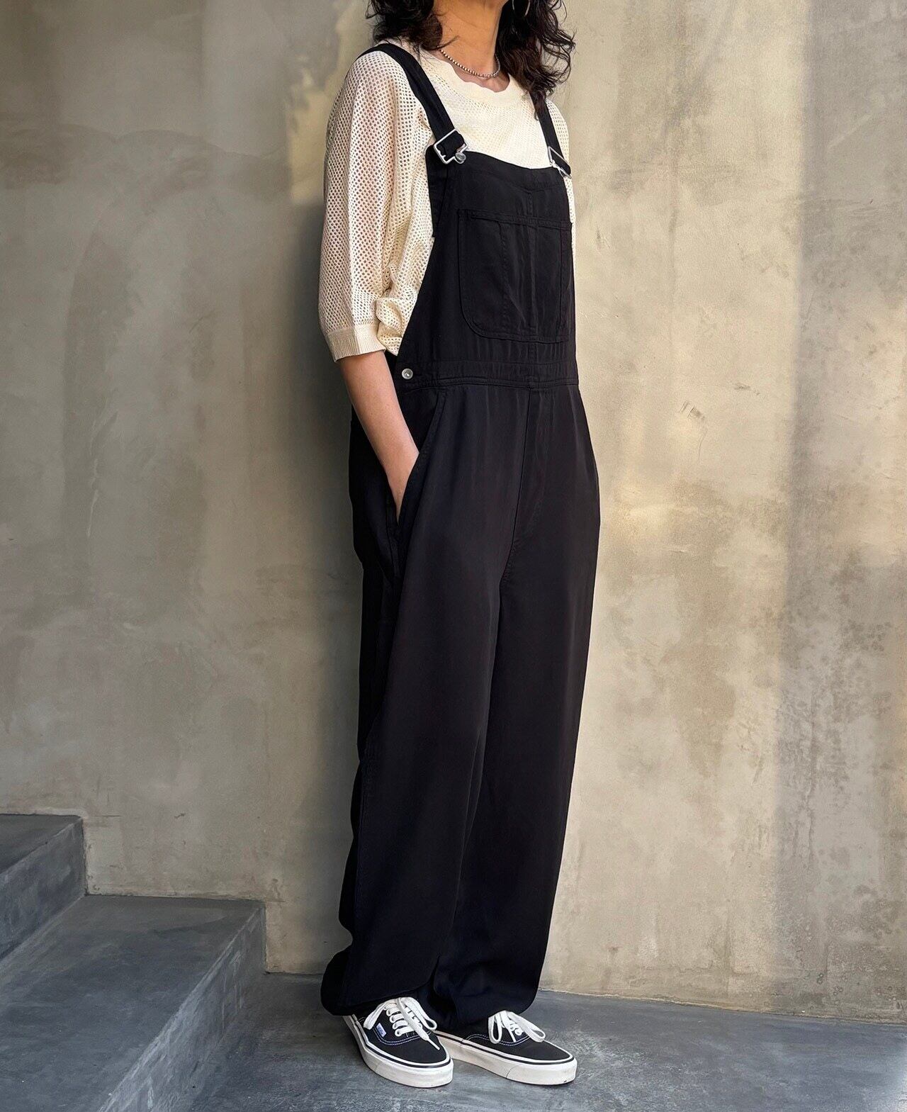カジュアルなデザインながらテンセル素材で落ち感があるので大人の女性にも履いていただき易いオーバーオールです。