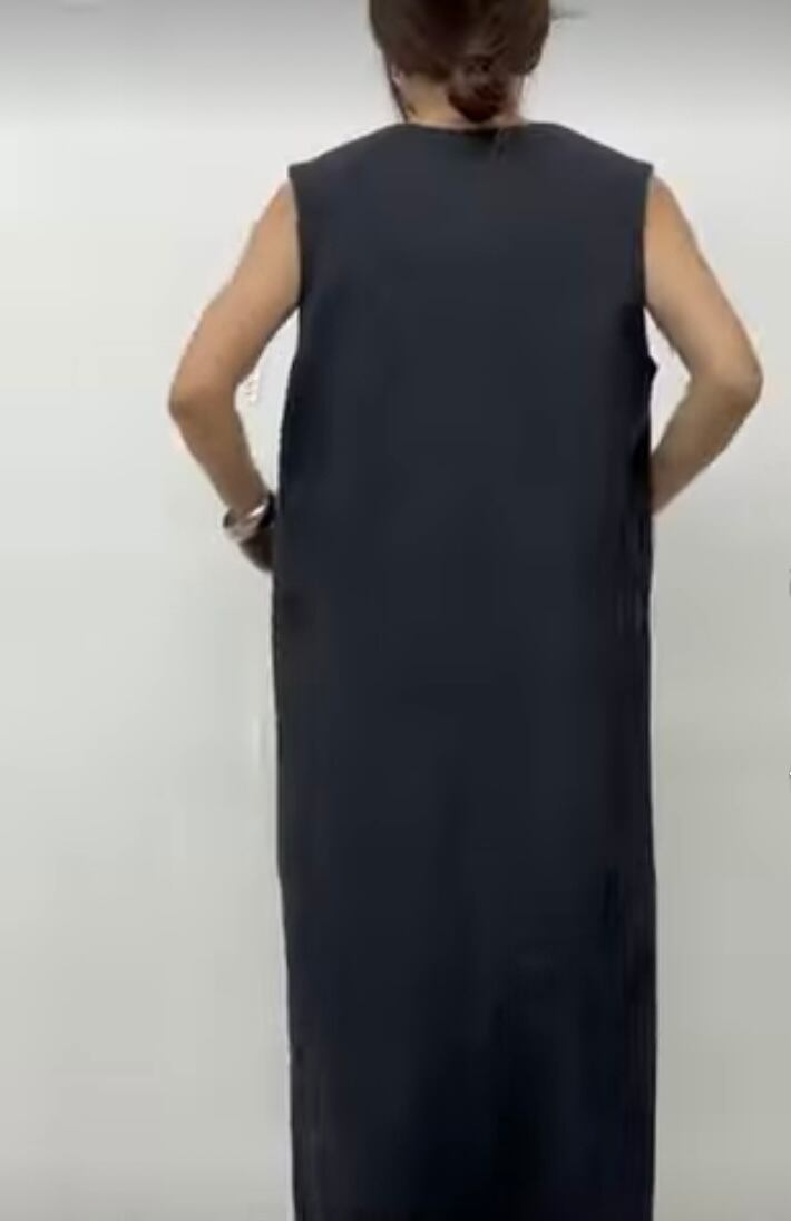 巻き風ジャンパースカートはゆったりなサイジングでインナーを選ばす、体のラインも拾いにくいゆったりサイズ。