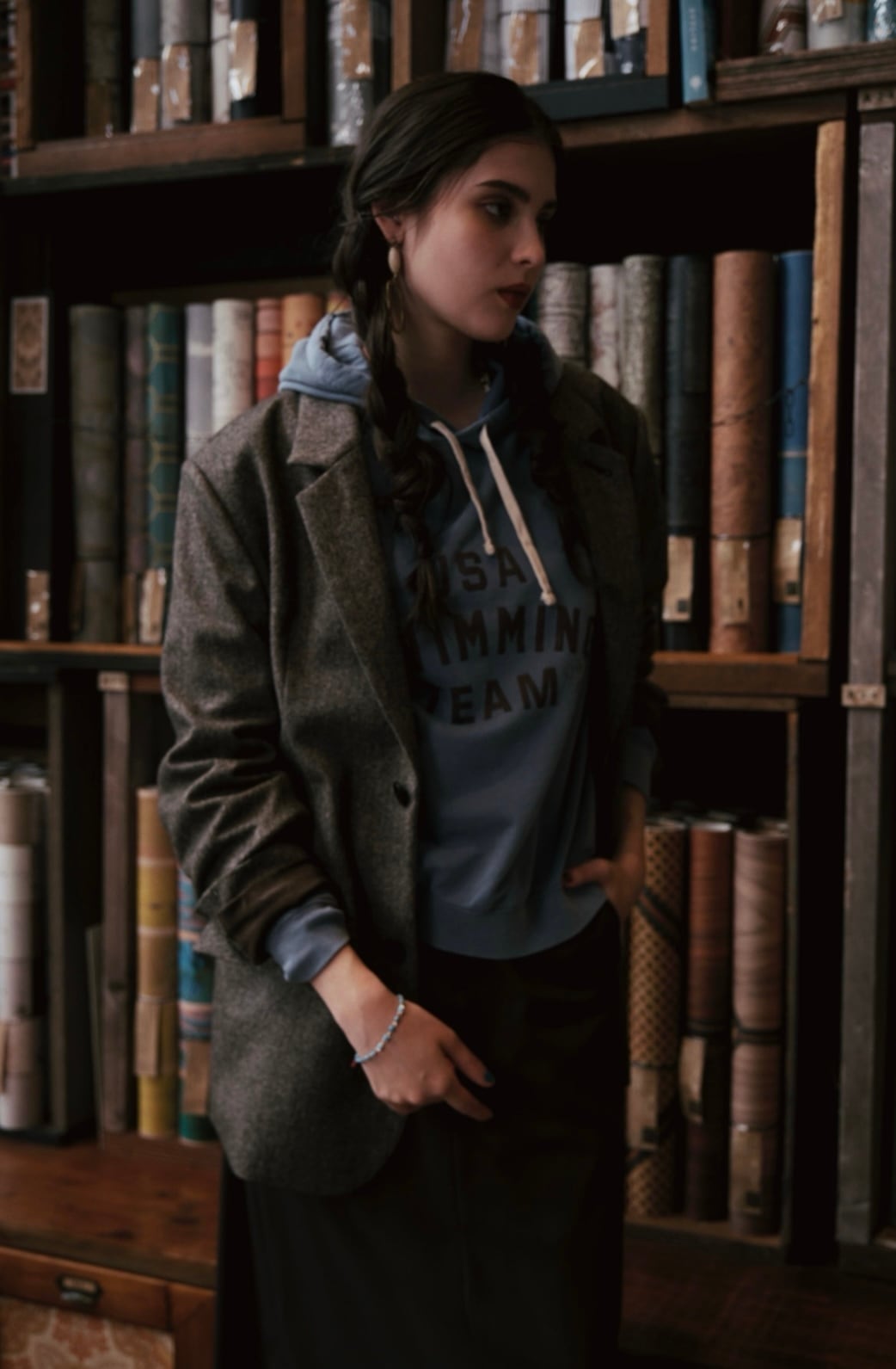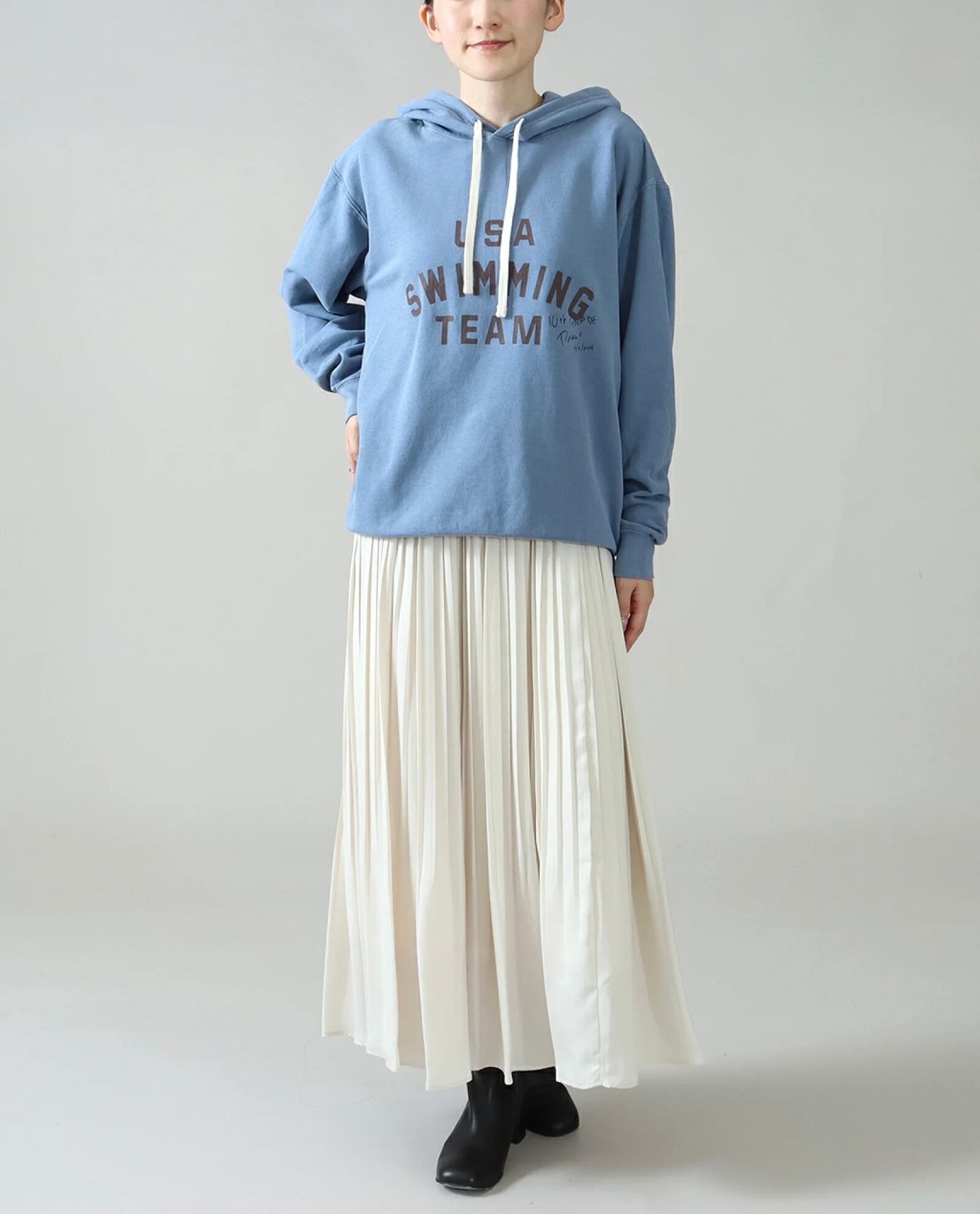 製品洗いで仕上げているので加工感があり、ヴィンテージ風にスクールスウェットに。
