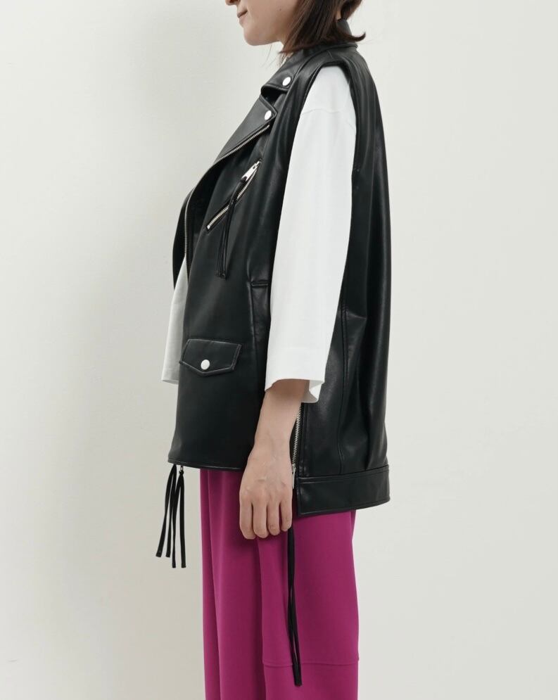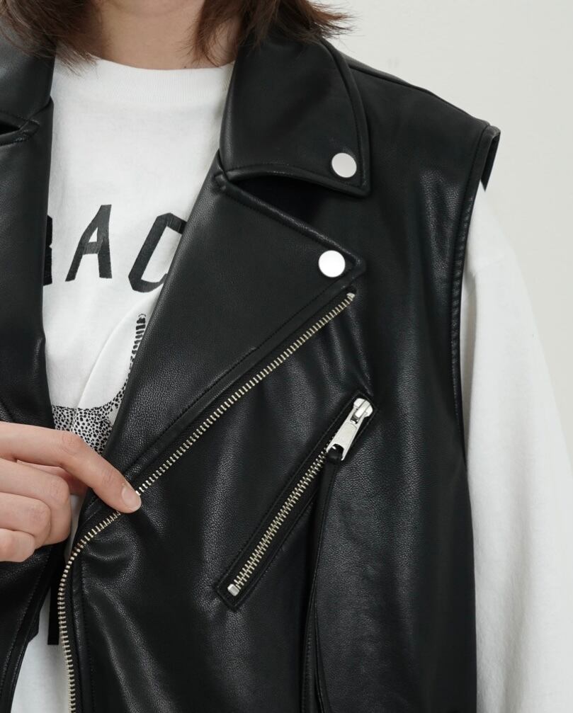 エコレザーライダースジレ