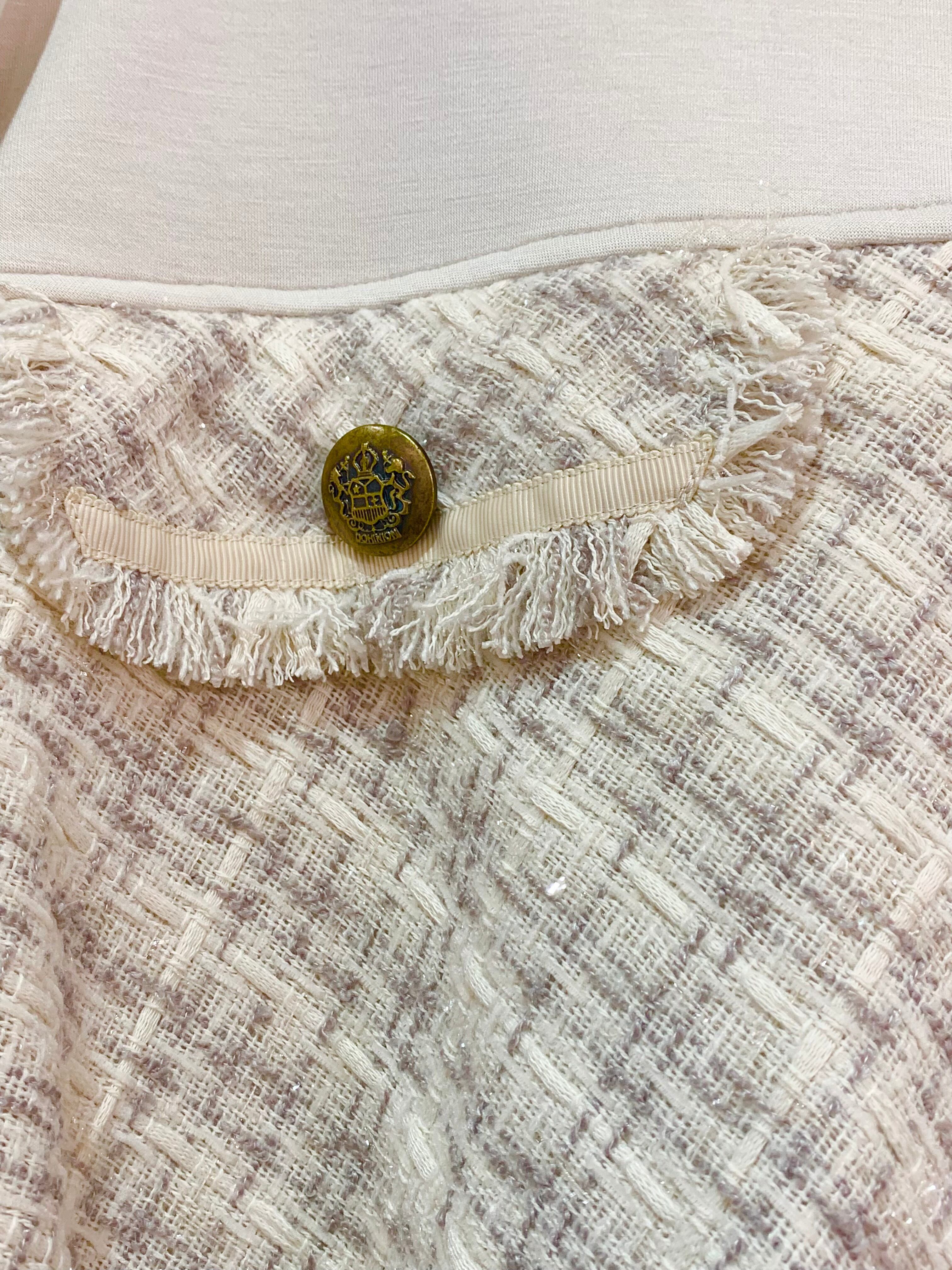 シンプルな中にもツイード生地の魅力がしっかりと感じられる一着であり、デニムやパンツなどのカジュアルなスタイルはもちろん、フレアスカートやドレスにも合わせやすい汎用性の高いアイテムです。