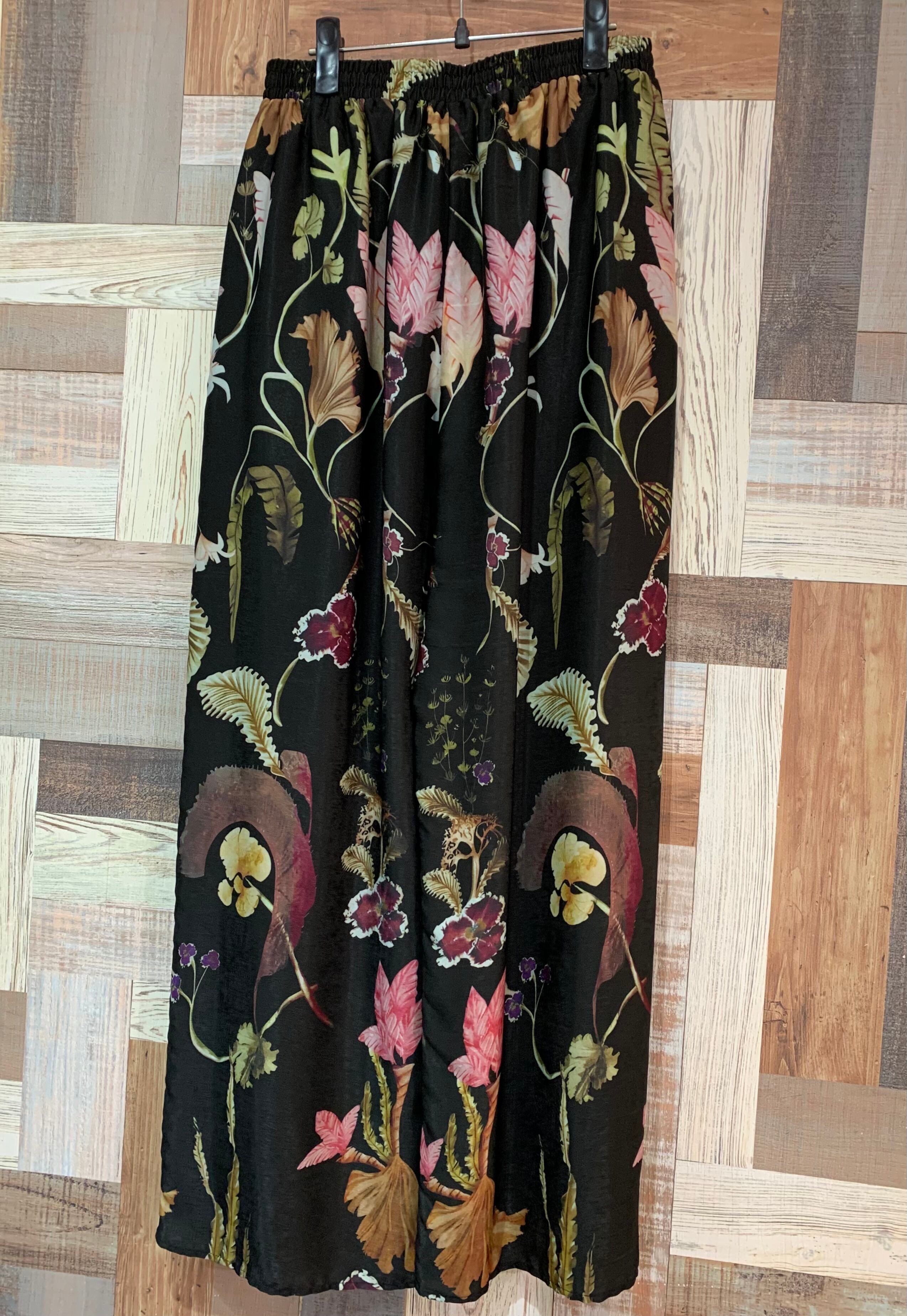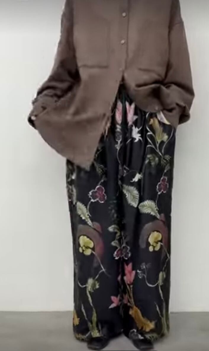 大きめのボタニカル柄がポイントのワイドパンツです♪