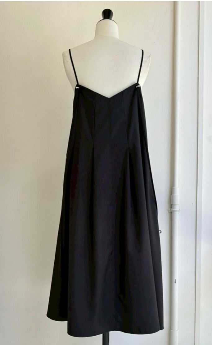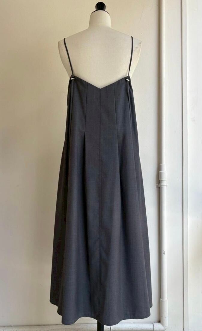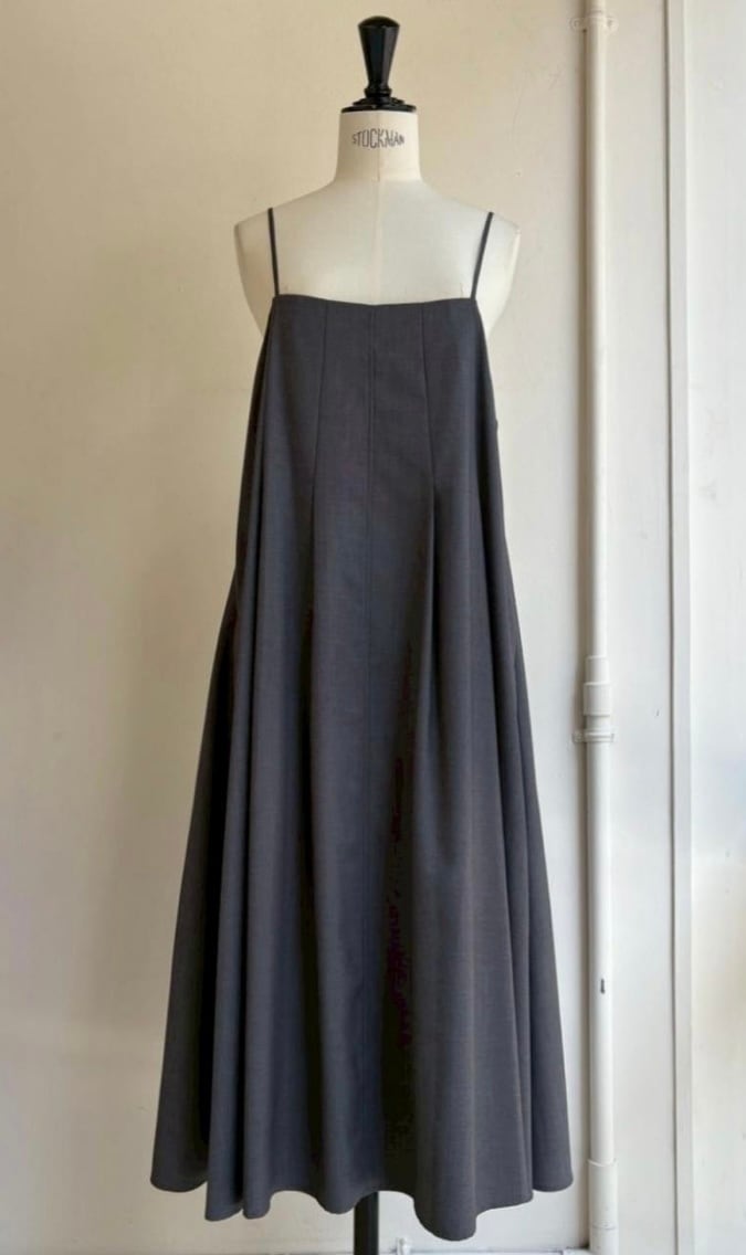 身体を締めつけないリラックス感のあるシルエットながら縦の切替とすっきりとした印象のキャミワンピースです。