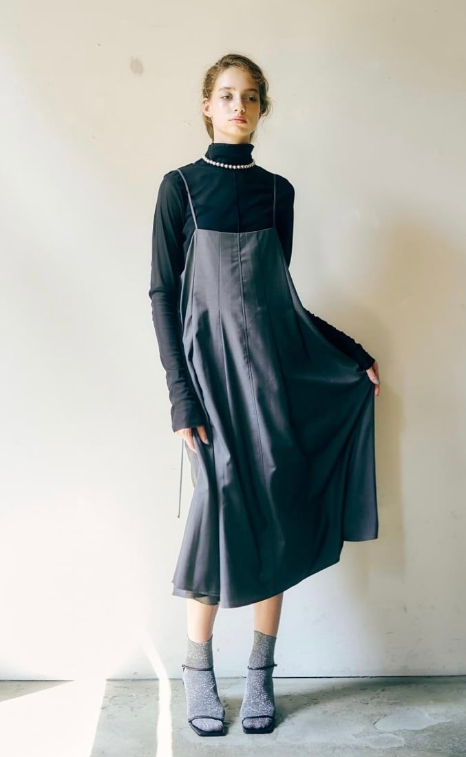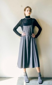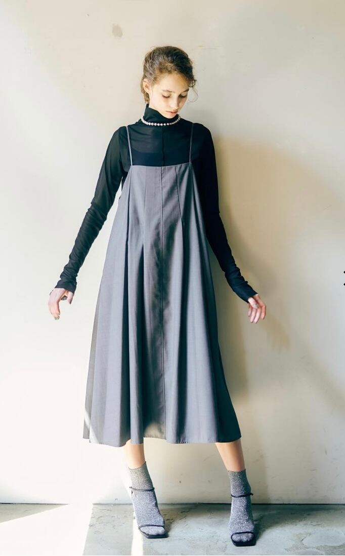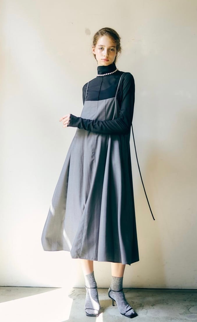 Tシャツやタートルニットを合わせてシーズンレスに着用でき、肩紐を伸ばしてスカートしても使える着回し力も魅力の一着です♪♪