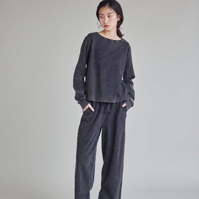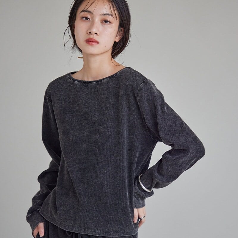 トレンド感のあるシルエットに、アシッド加工のムラ感が映える一枚に。