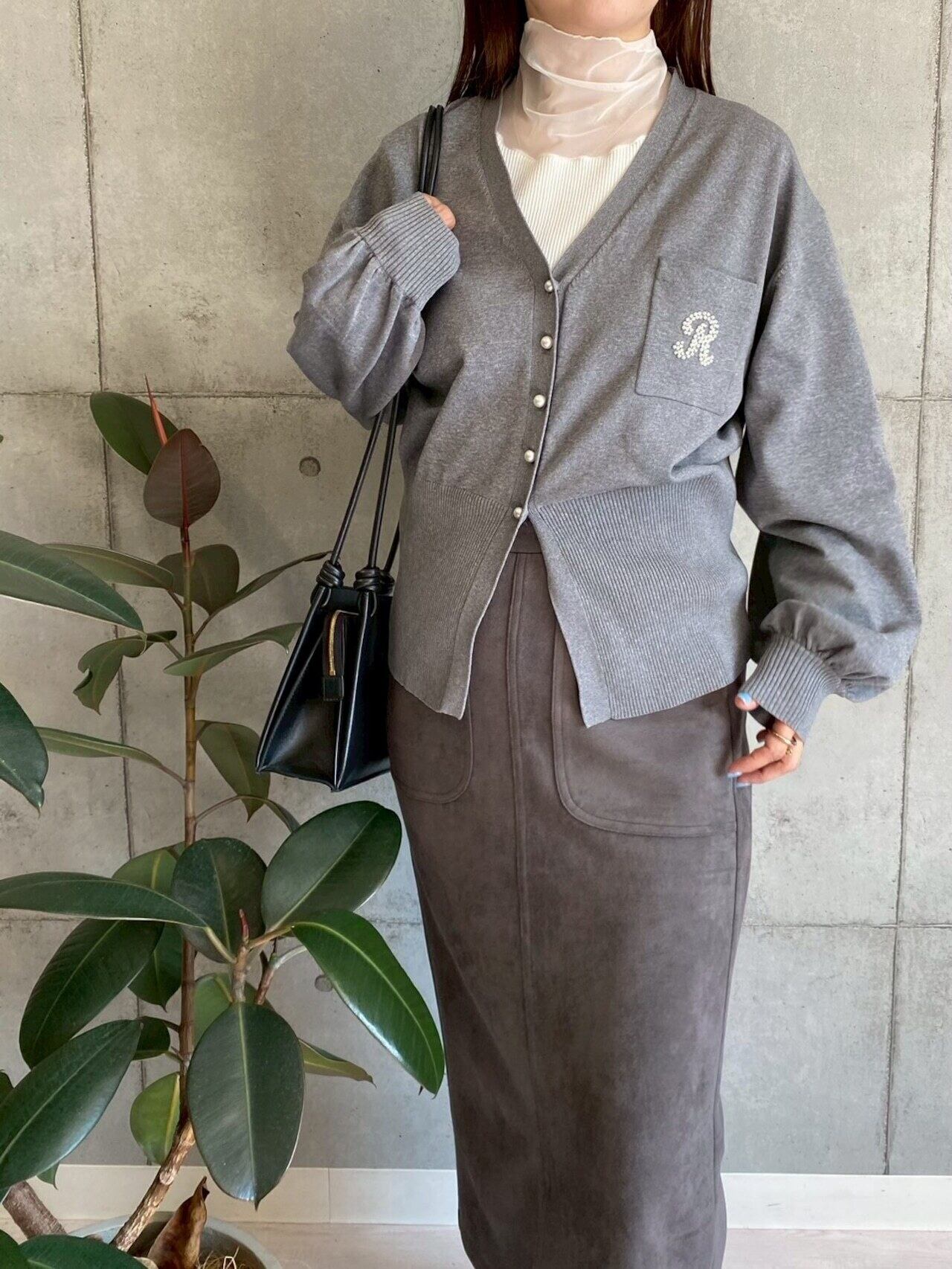 胸元にはパールであしらった「R」のモチーフを施し、さりげないアクセントに。
