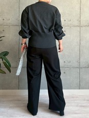 フェミニンなデザインを活かしてフレアスカートやワイドパンツと合わせるのがおすすめ。