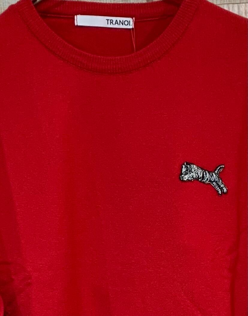 ワンポイントトラ刺繍カラーニット