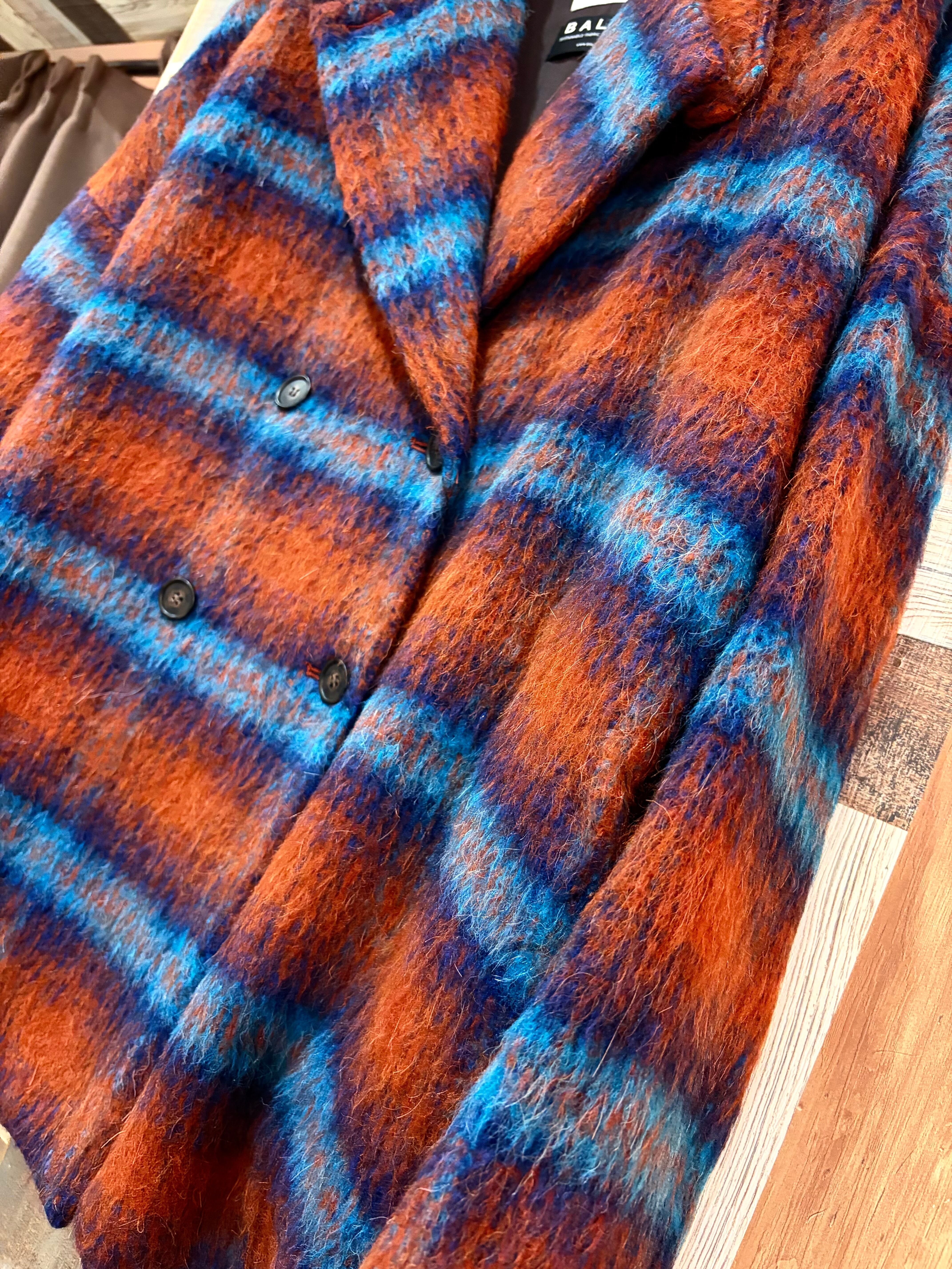 大きいチェックとカラーリングが目を引くイタリアBALLI社の生地を使用。