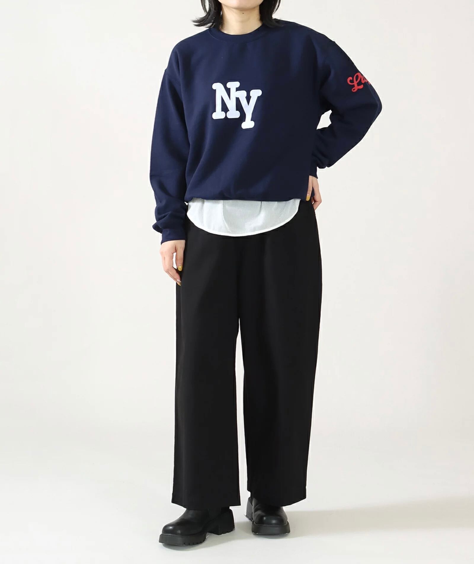 カジュアルなスウェットでありながら、ロゴデザインと風合いが上品さを醸し出すため、デニムやスラックス、ロングスカートなど、どんなボトムスにも合わせやすく、コーディネートの幅が広がります。
