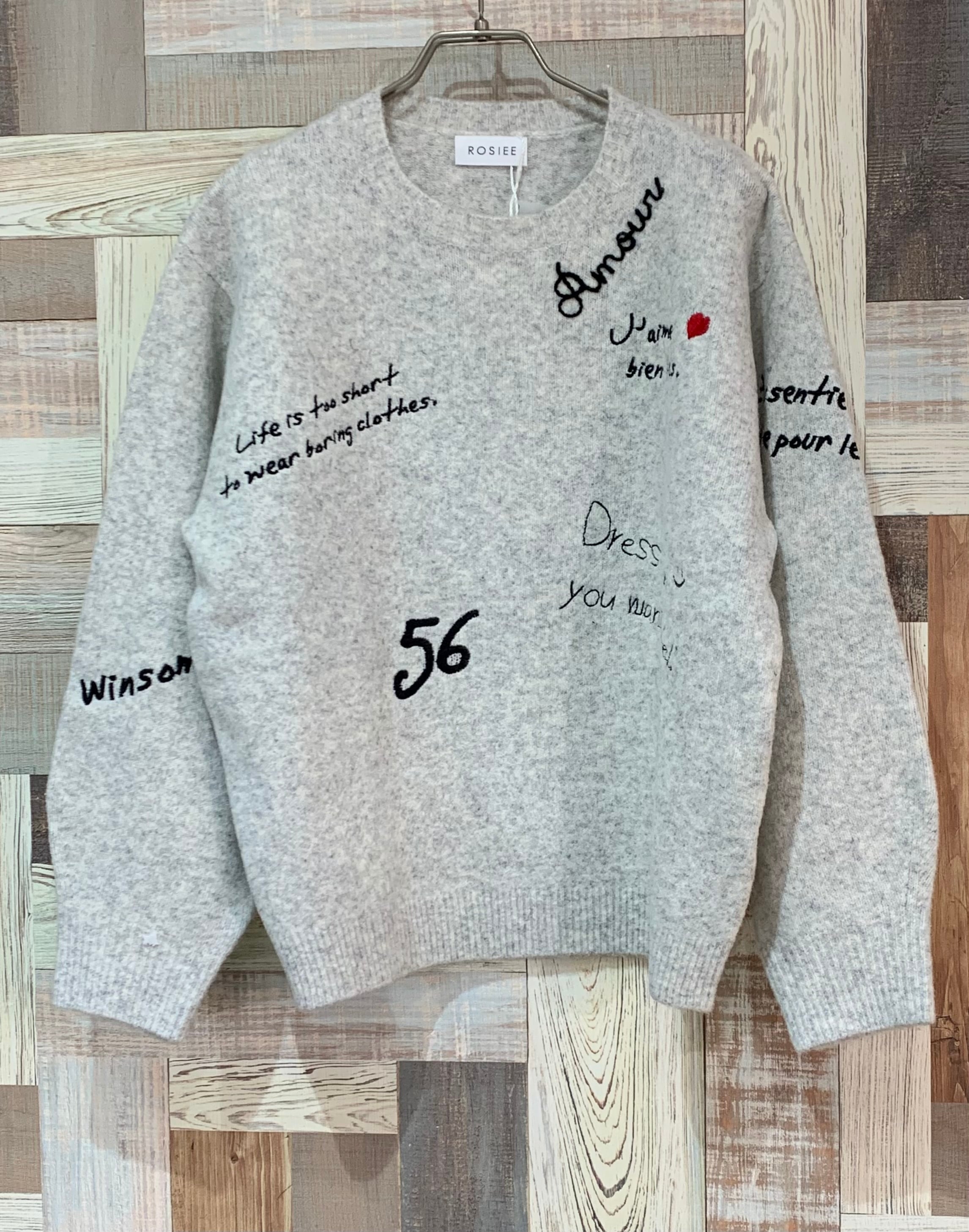レタリング刺繍ニット