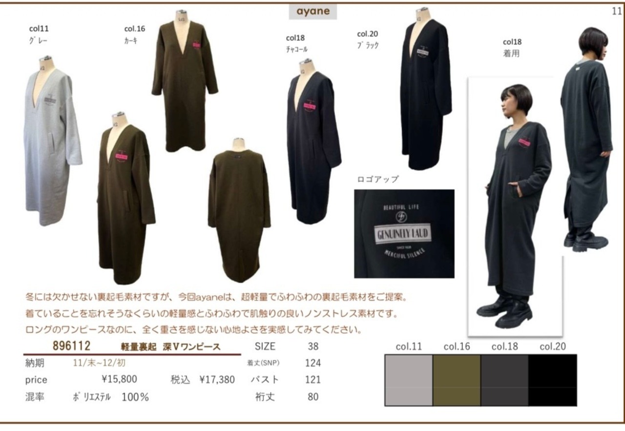 冬には欠かせない裏起毛素材ですが、今回ayaneでは超軽量でふわふわの裏起毛素材をご提案!