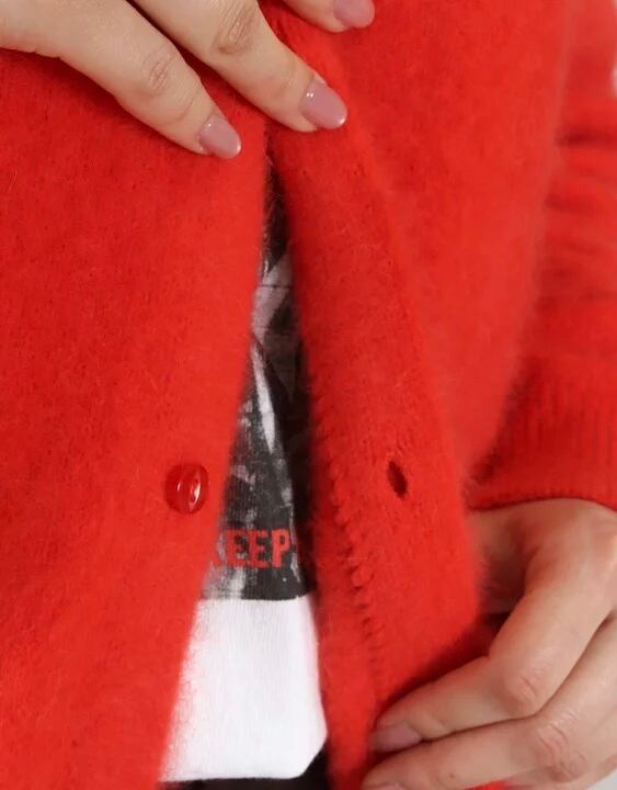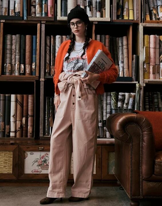 クルーネックのカーデは、前後でプルオーバーとしても着用OKです。