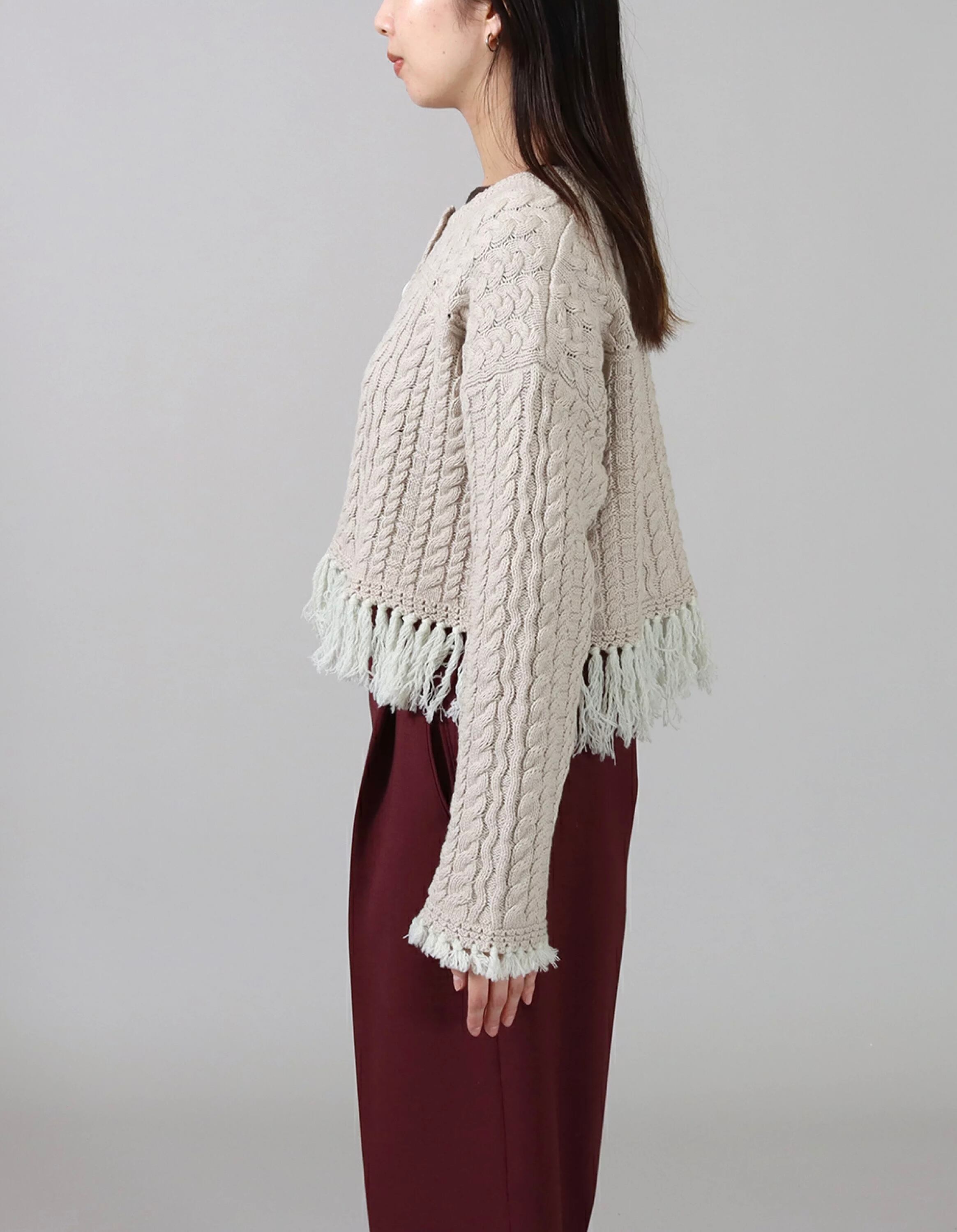 長めのフリンジが特徴のクルーネックカーディガン♪