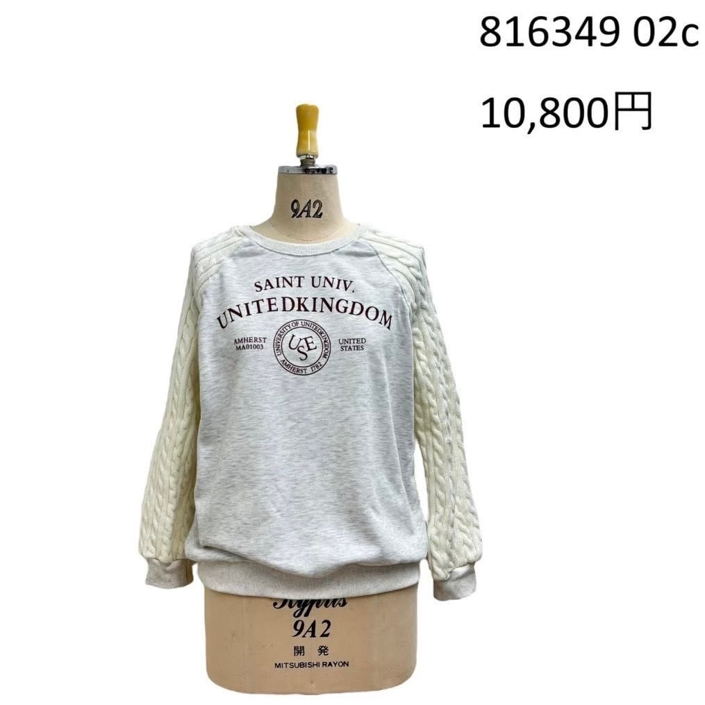 ニットスリーブ裏毛プルオーバー