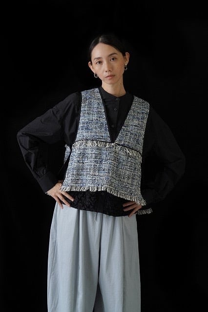 バックオーバートリムツイードベスト