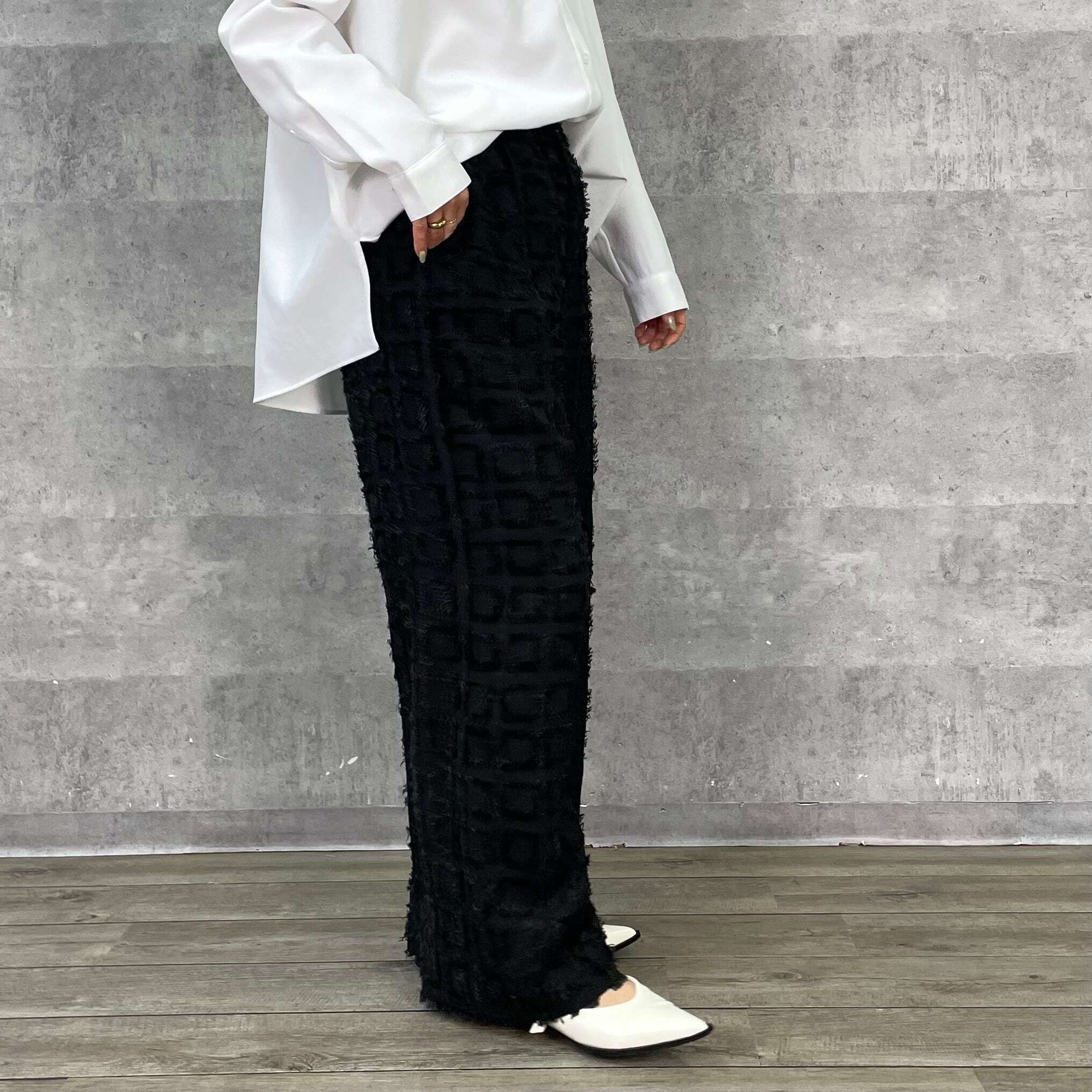 シンプルなトップス合わせにおすすめの主役級パンツ。