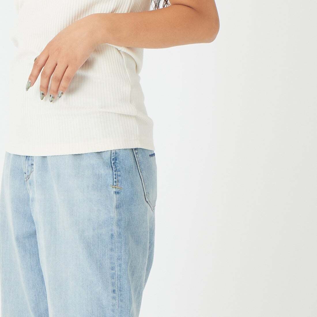 身生地は伸縮性のある柔らかなリブ生地を使用しています。
