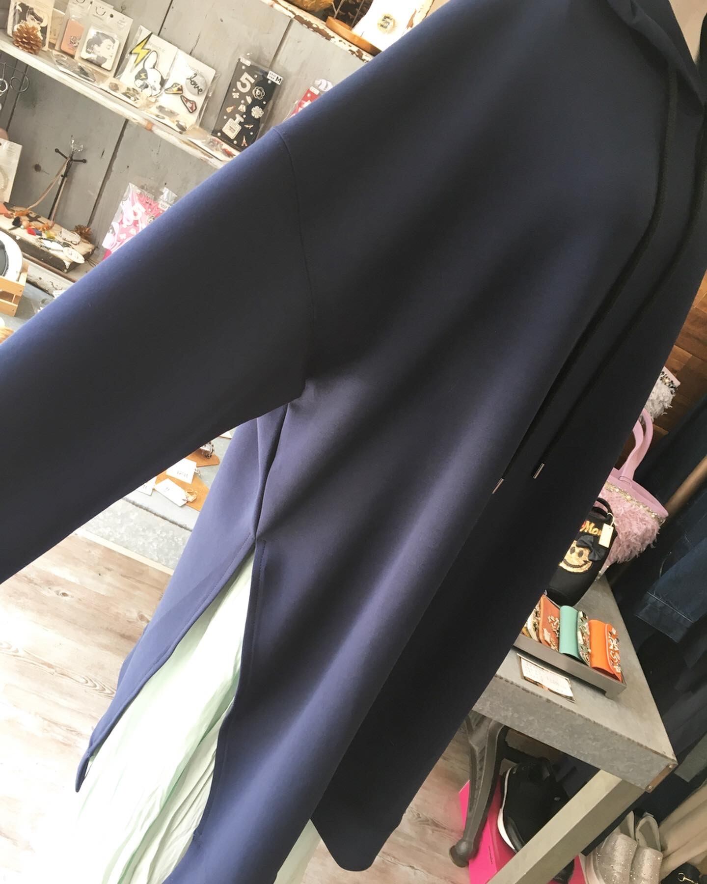 しっかりロング丈に大きく開いたサイドスリットがポイントのパーカー、程よい厚みのツルンとしたポンチ素材で着心地も抜群です。