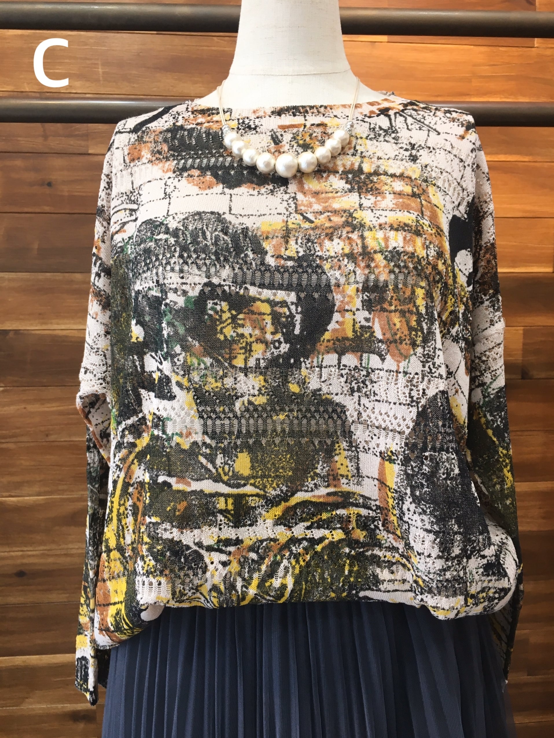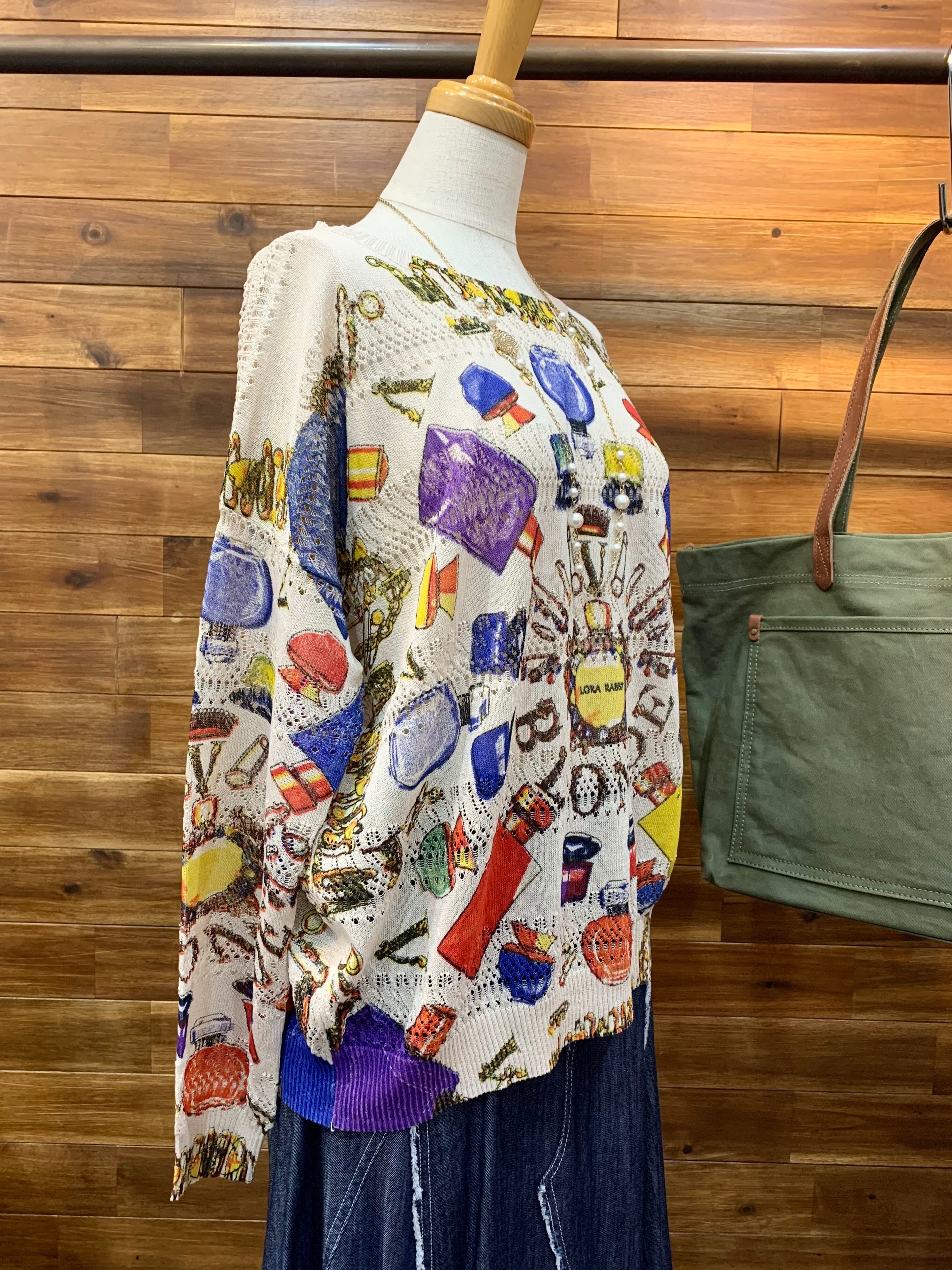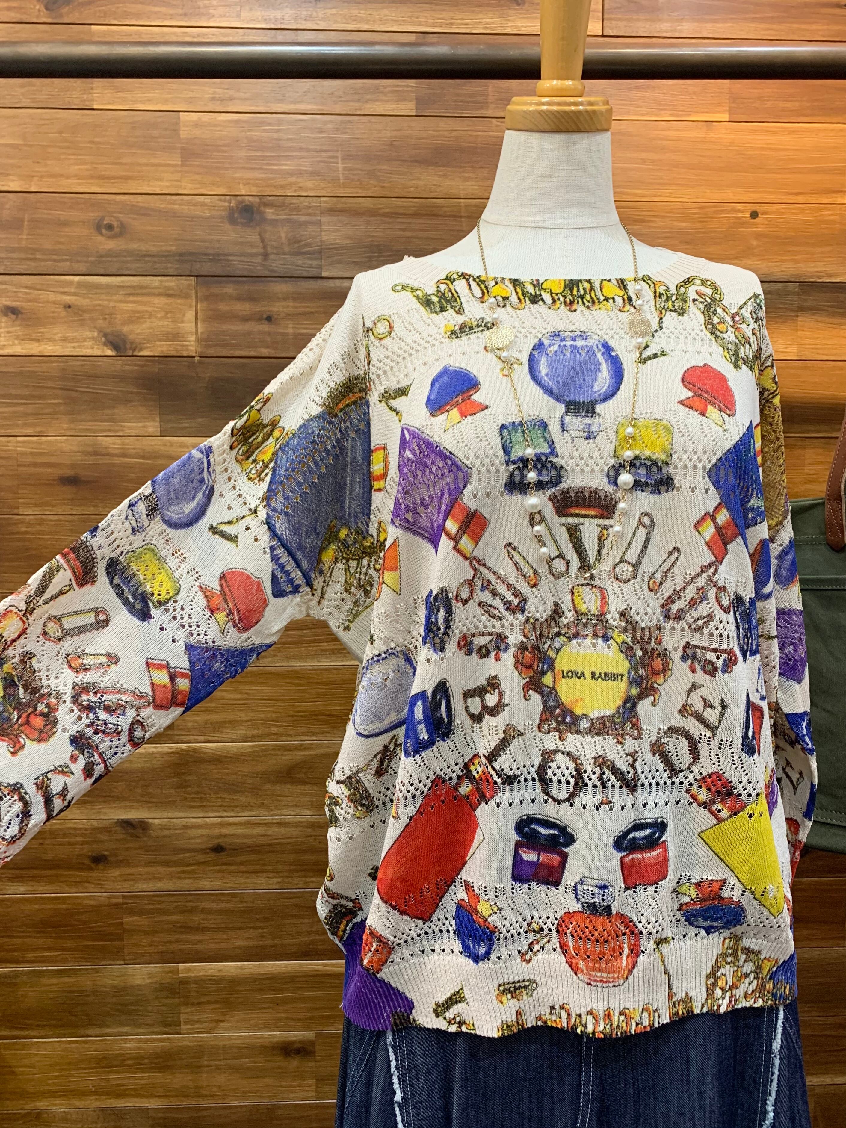 コーディネートのポイントになるプリントニット、それぞれ印象の違う3柄でご用意しております♪