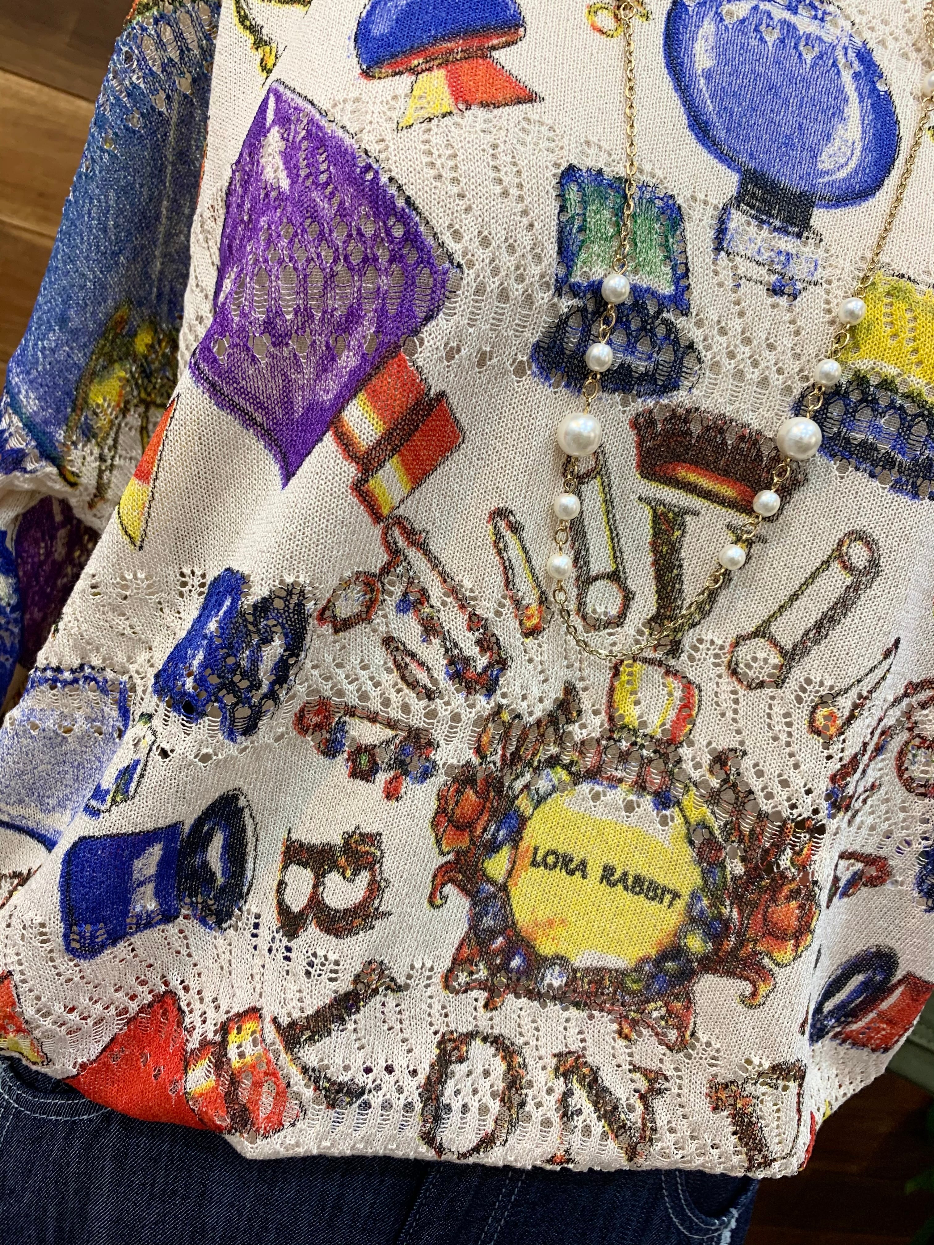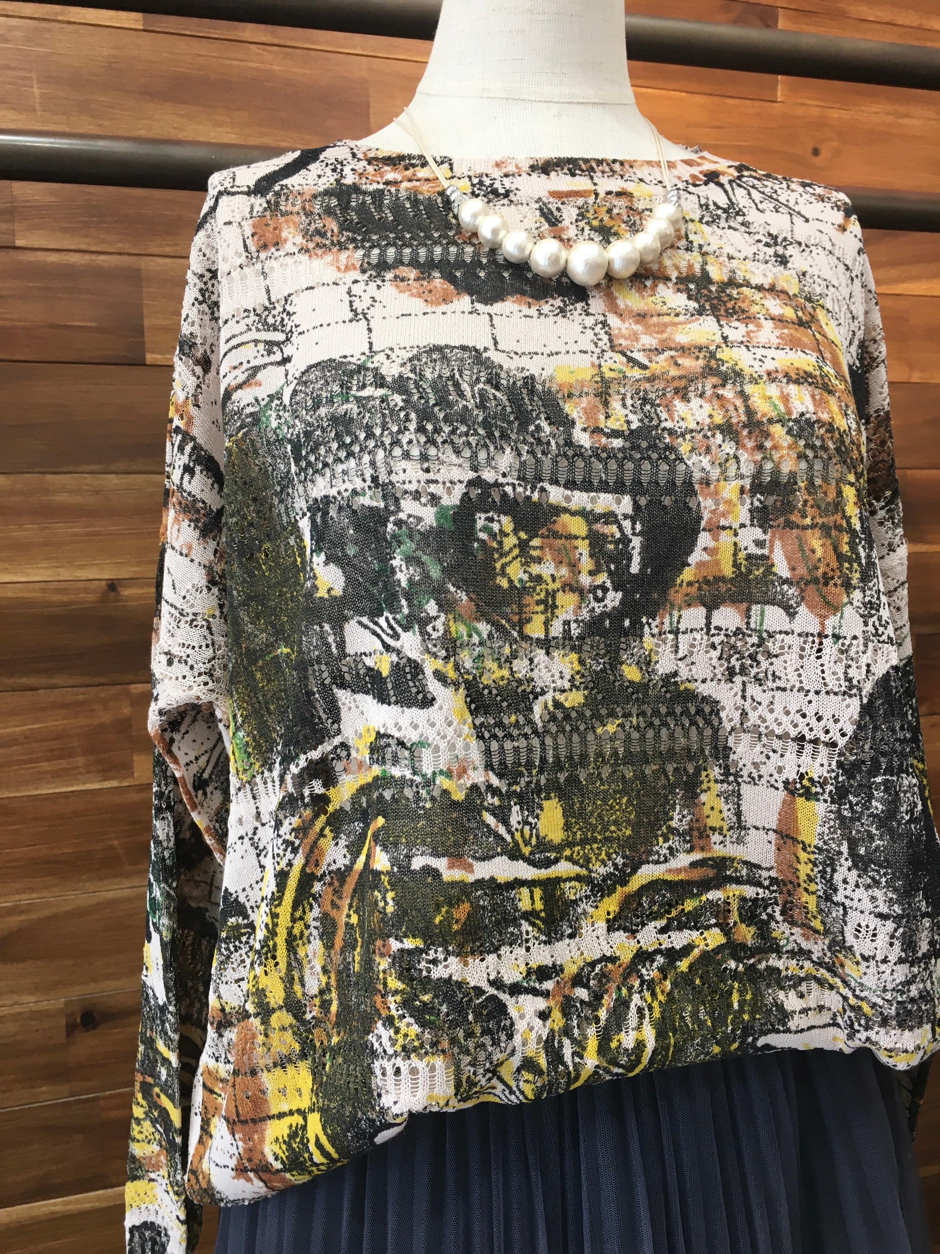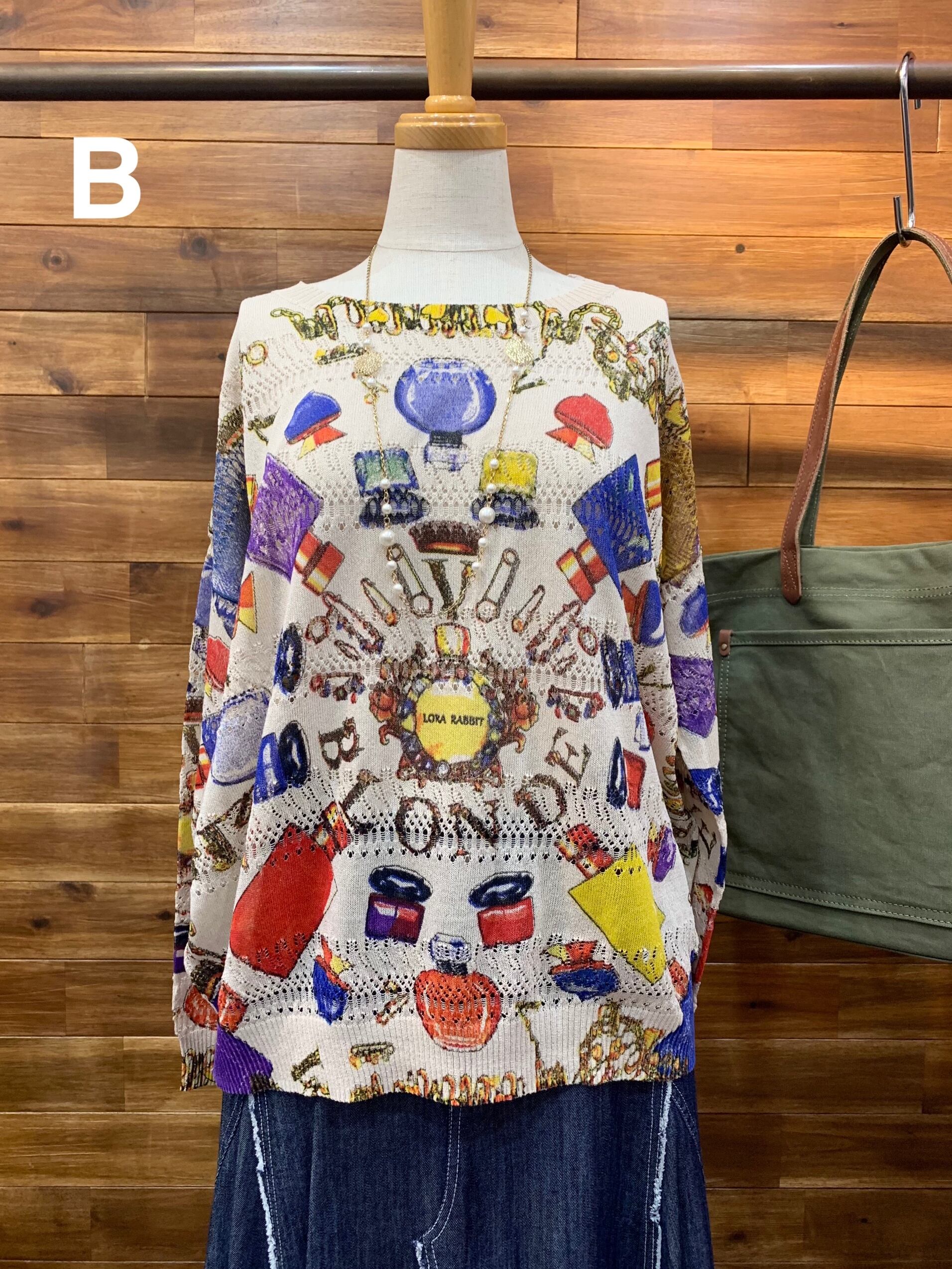 コーディネートのポイントになるプリントニット、それぞれ印象の違う3柄でご用意しております♪