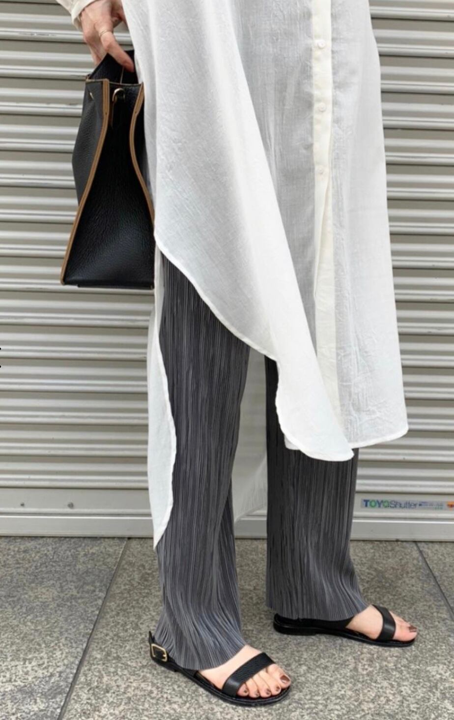 プリーツが縦のラインを強調してくれるので、細見え効果も期待できますよ!