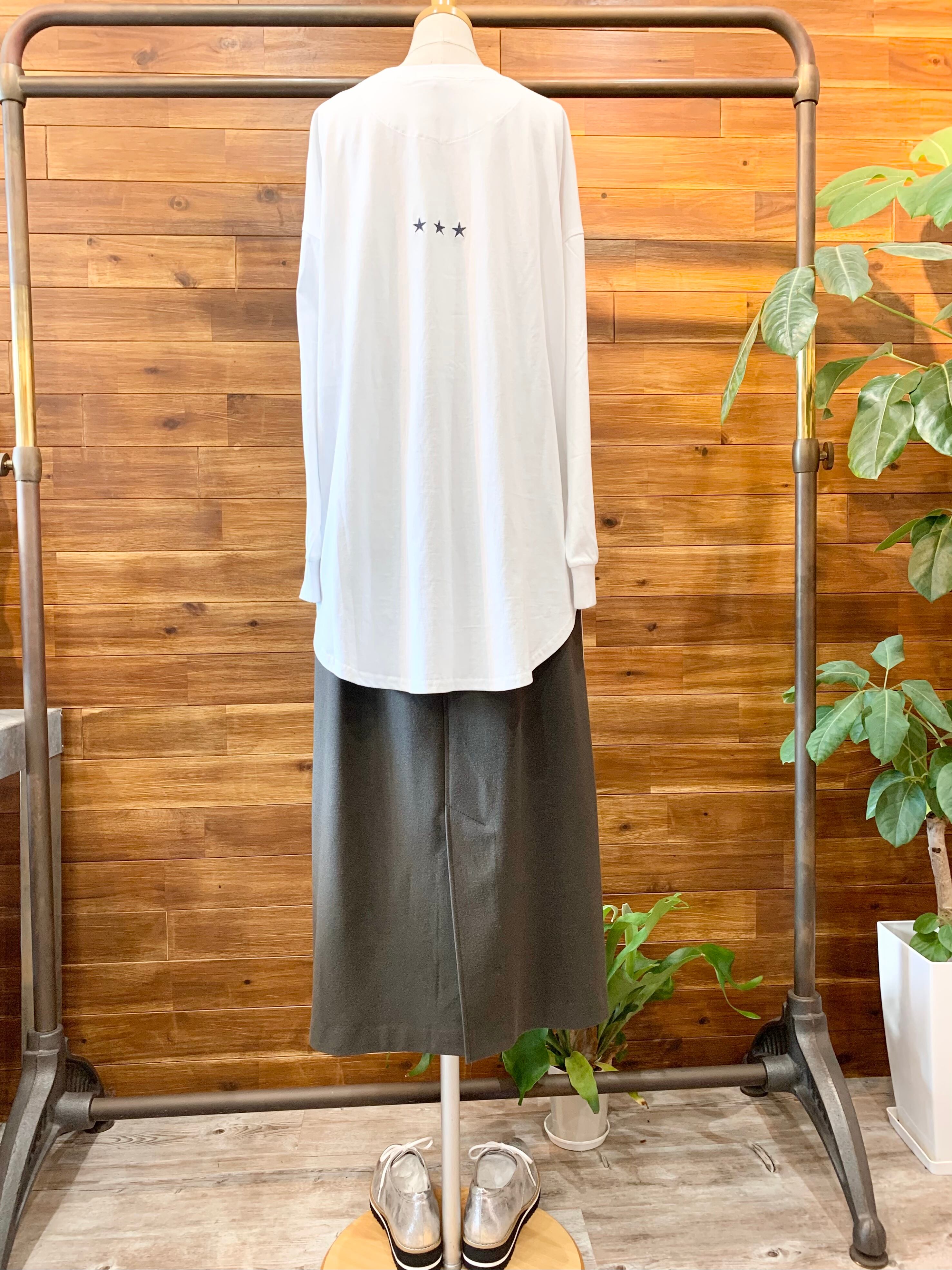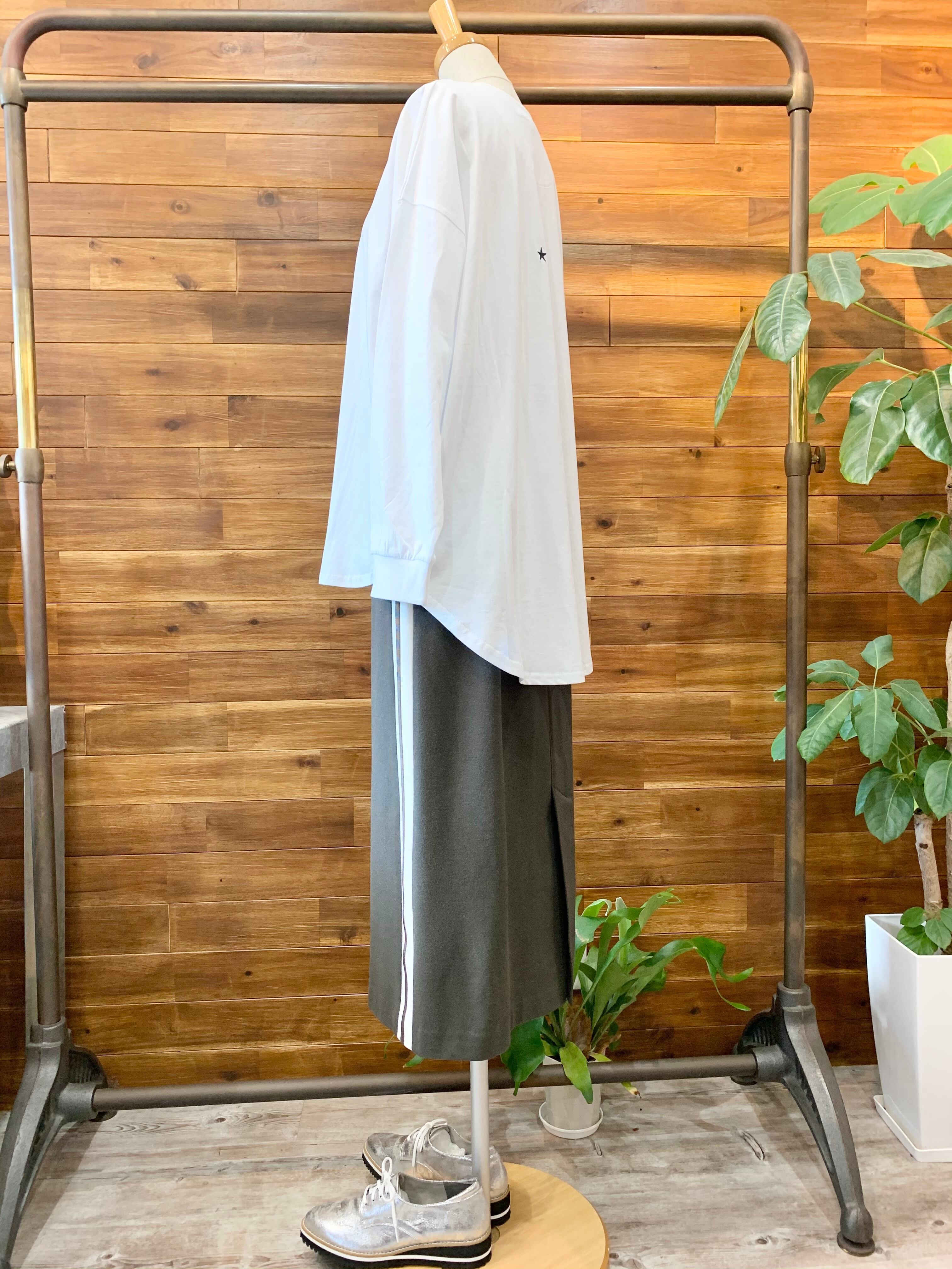 前後差のあるレングスと、ラウンドした裾のデザインで一枚着でもサマになるシルエットに♪
