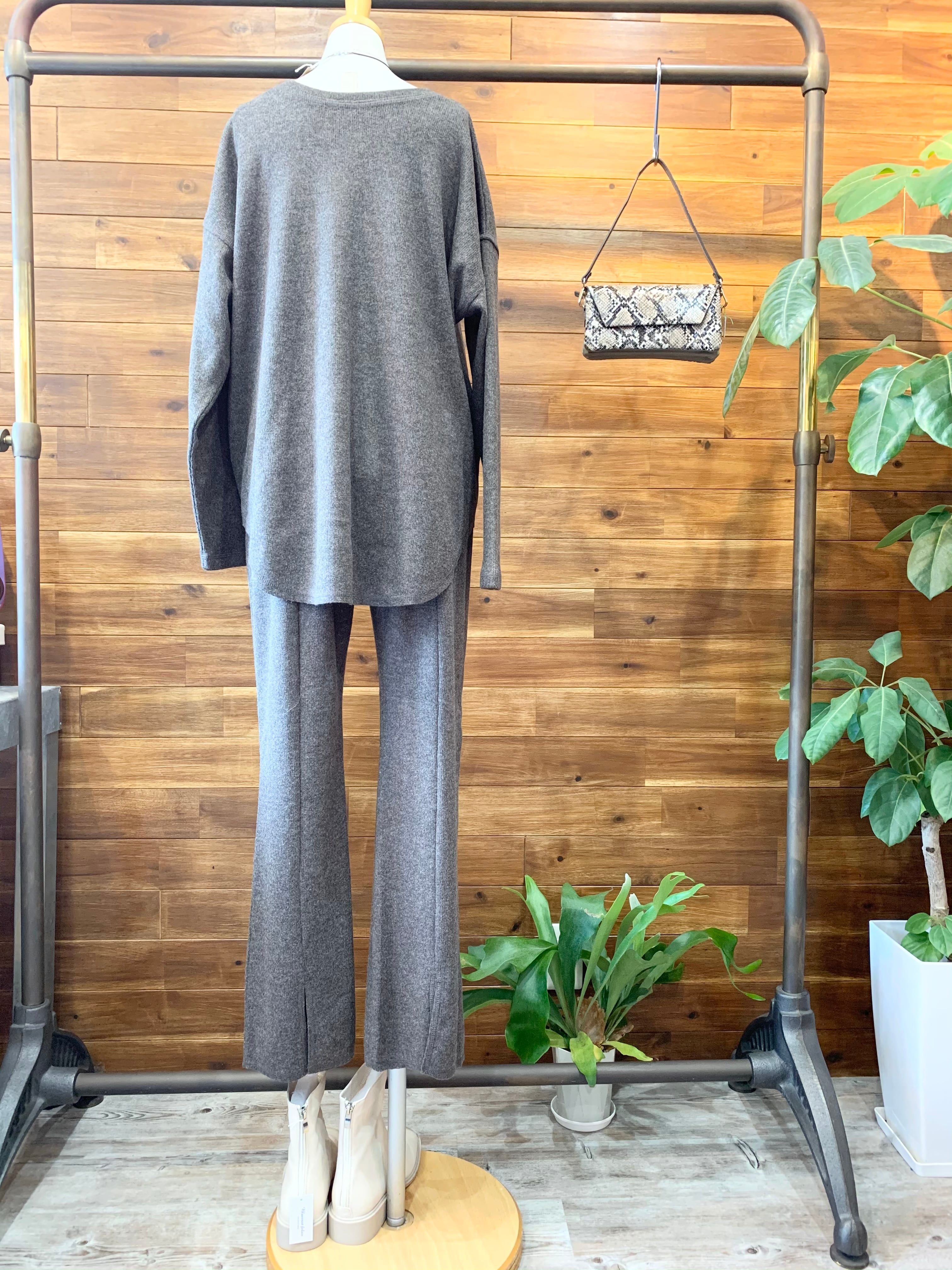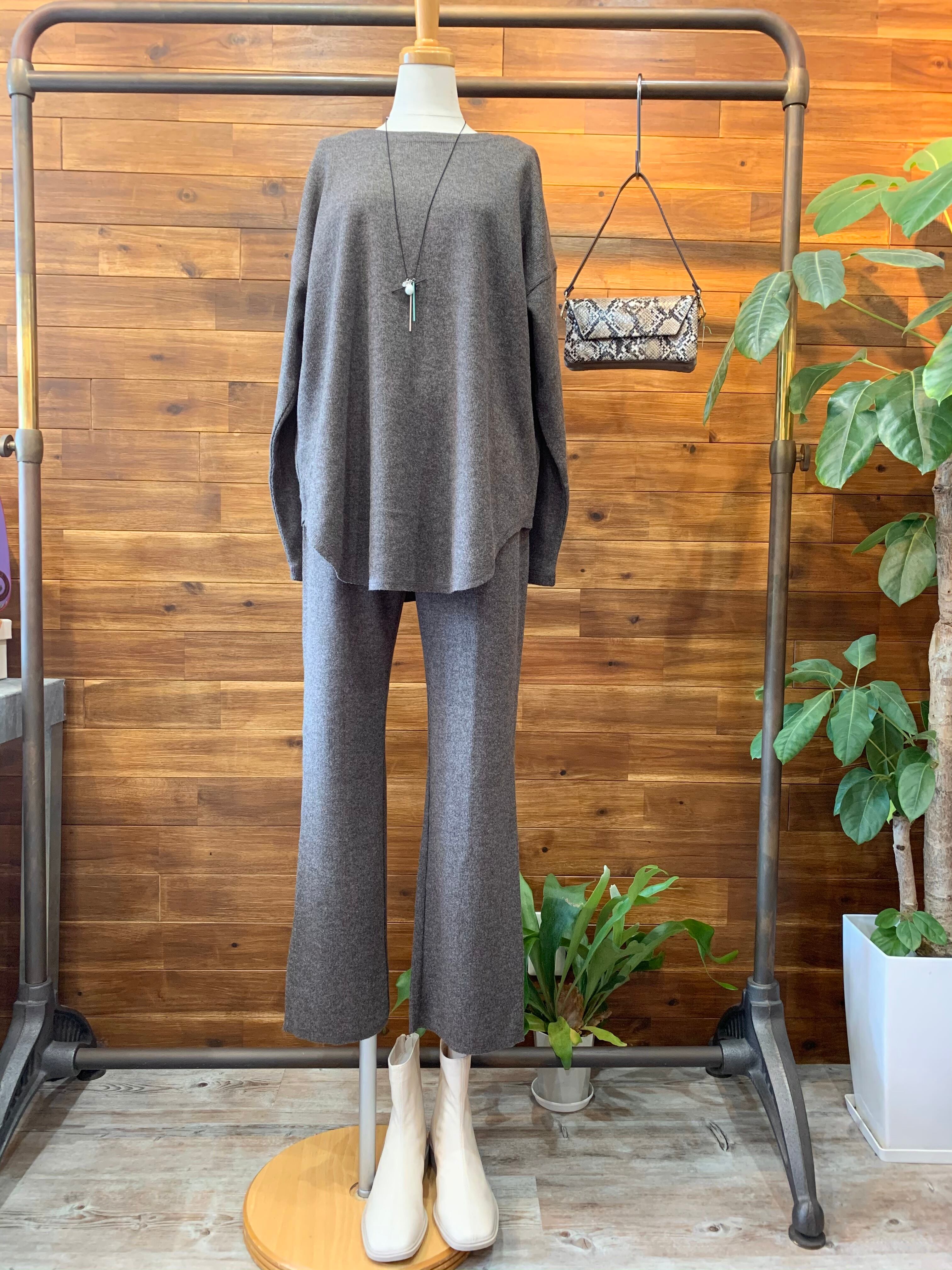 ニットとカットソーの中間のような素材感で、一枚着としてはもちろん、ワンピースやチュニックアイテムとのレイヤードにも使いやすいニットソーのパンツ♫