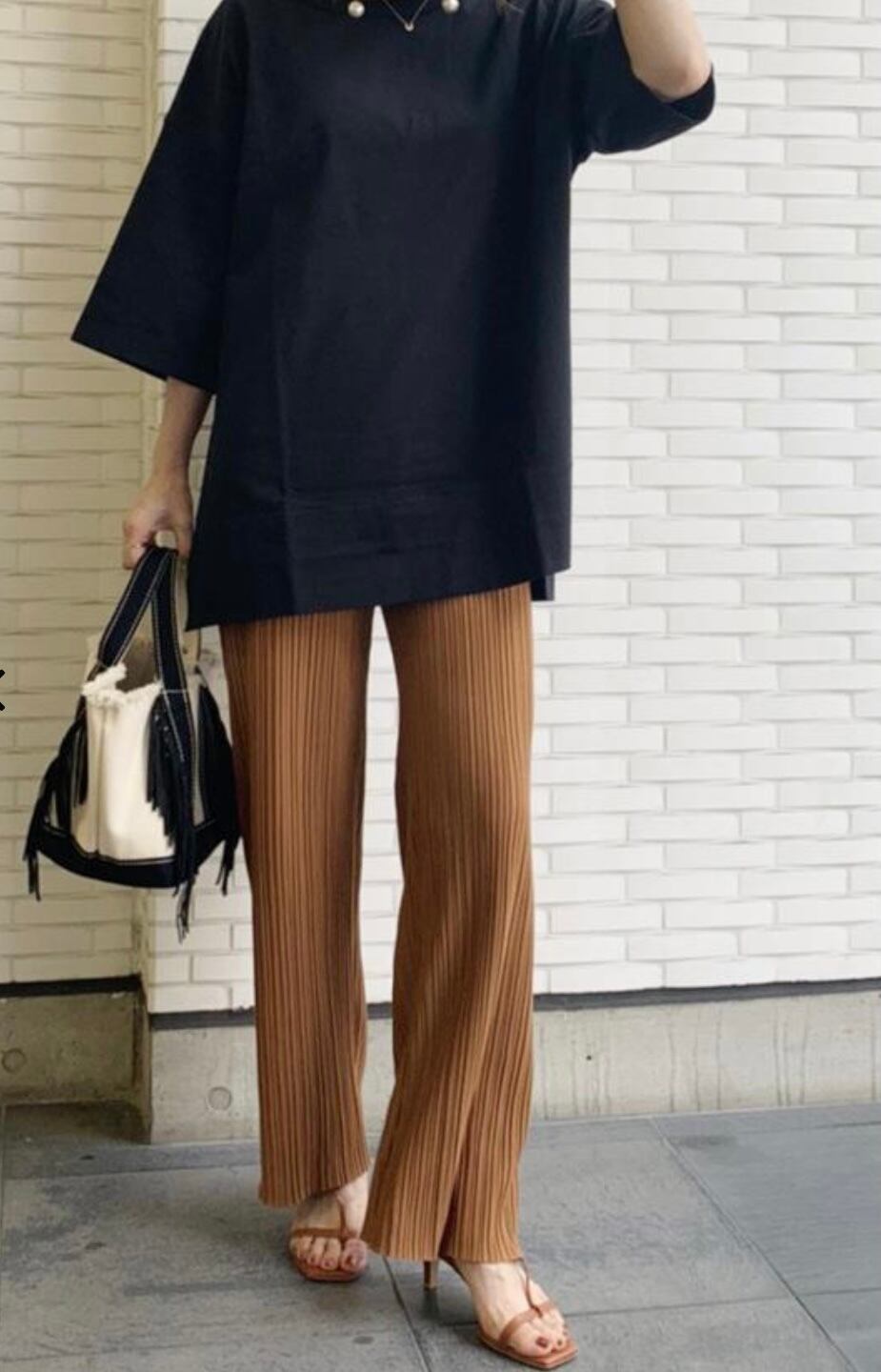ランダムなプリーツが身体のラインを拾いすぎず程良くフィットして、綺麗なシルエットを出してくれます◎