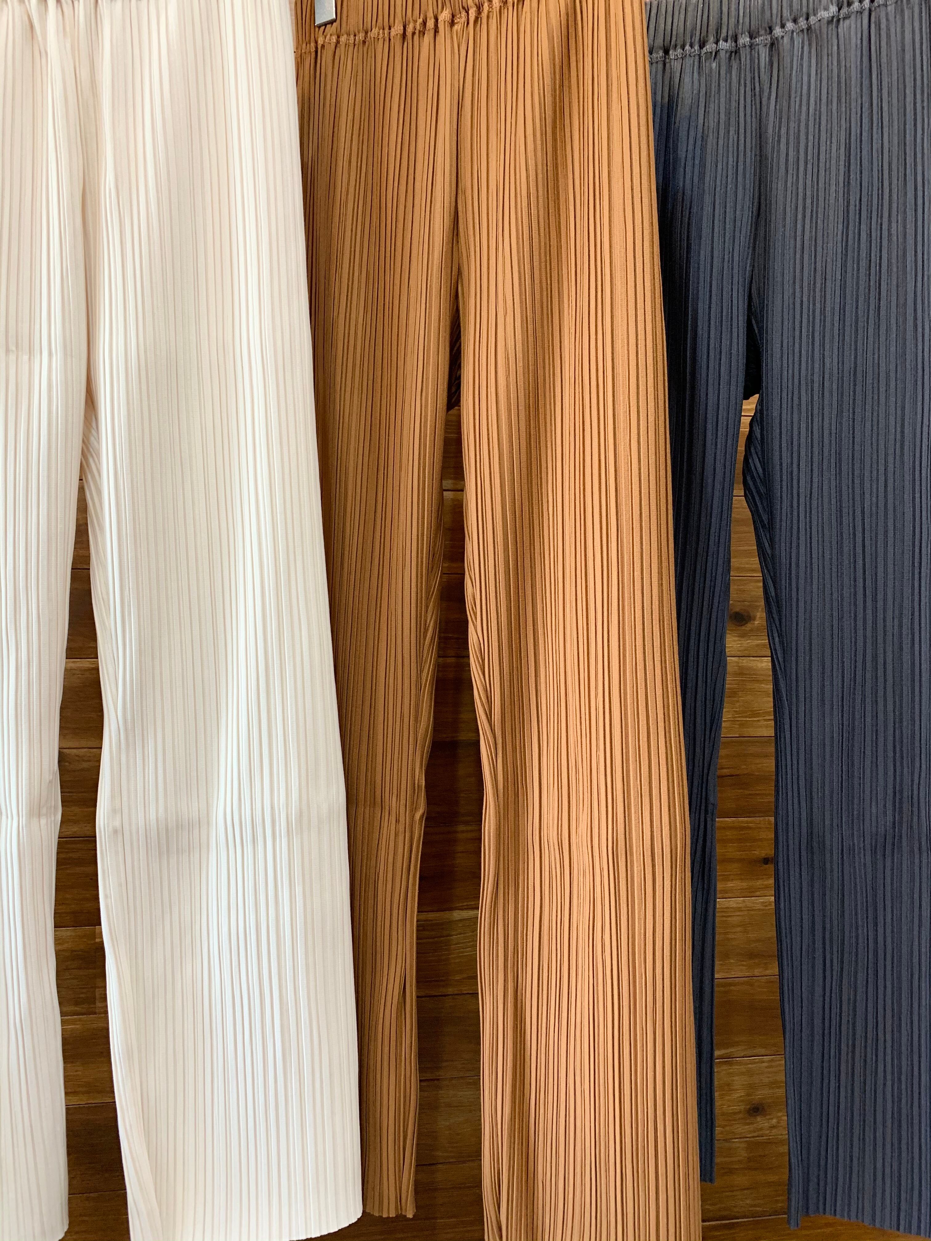 総ゴムのウエストと伸縮性のあるプリーツ素材で、ストレスフリーでデイリーに活躍してくれそうです♡