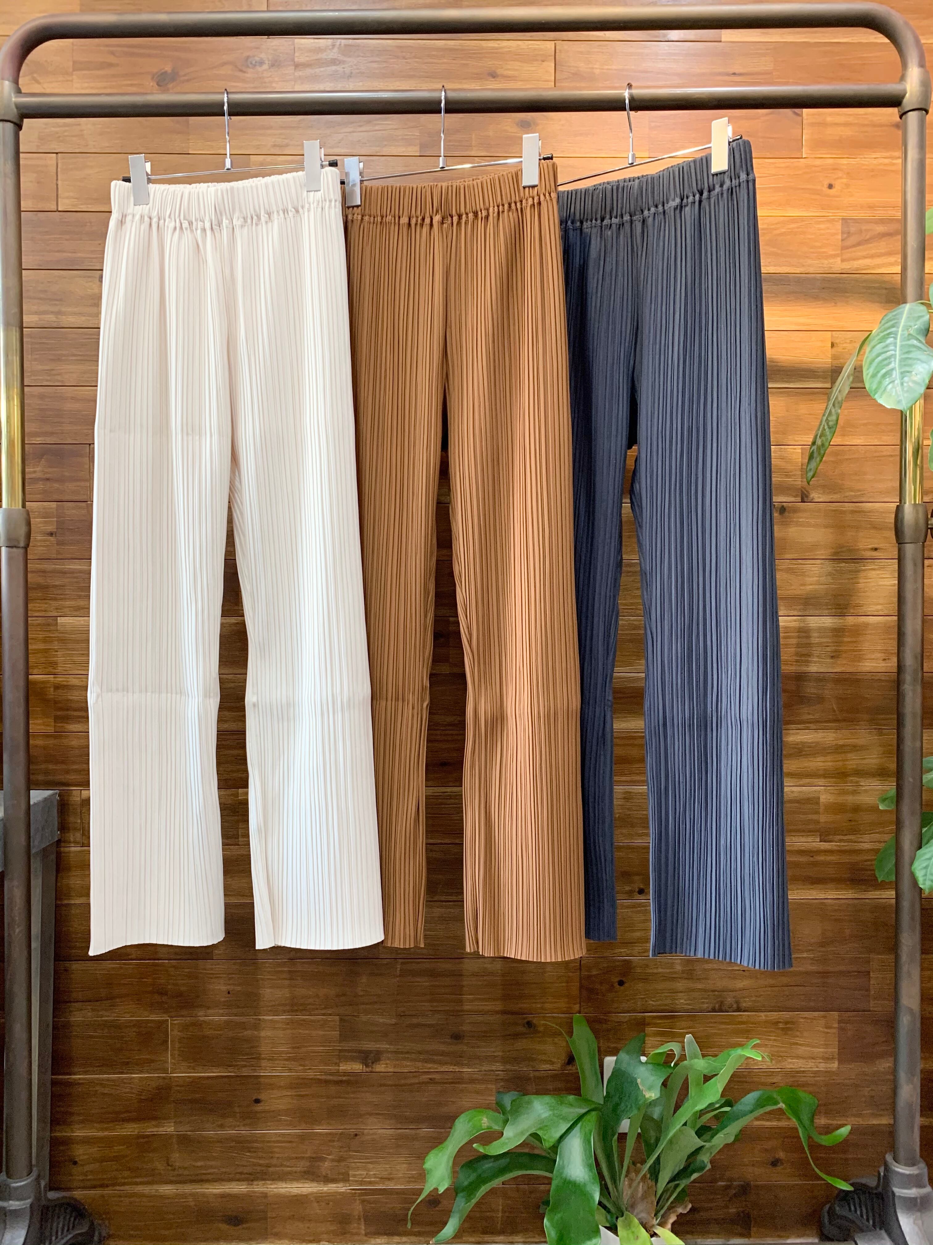 女性らしい抜け感を残しつつ、ランダムなプリーツ幅も少し広がり、より表情豊かに。