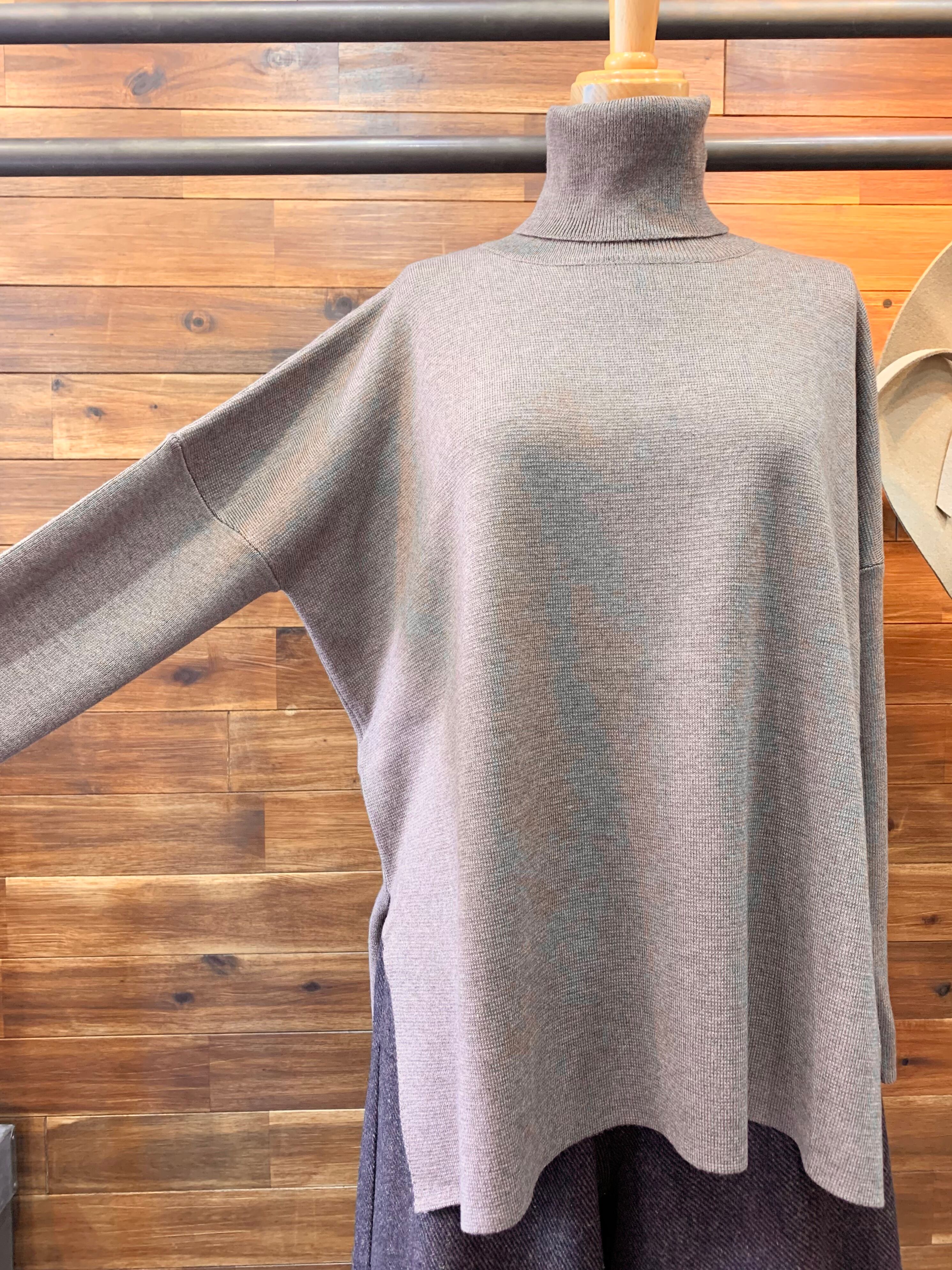 滑らかな肌触りが心地よいウール混のタートルネックニット♪