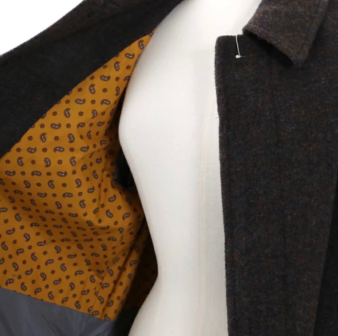 上身頃の裏地にはペーズリーの小紋柄を配し、袖と下身頃は滑りの良いポリエステル素材の裏地を配して、着心地も見栄えもこだわりを感じディティールに♪