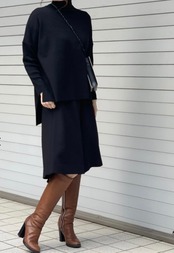 タイツやトレンドのロングブーツに合わせて、軽やかな丈感が新鮮♪