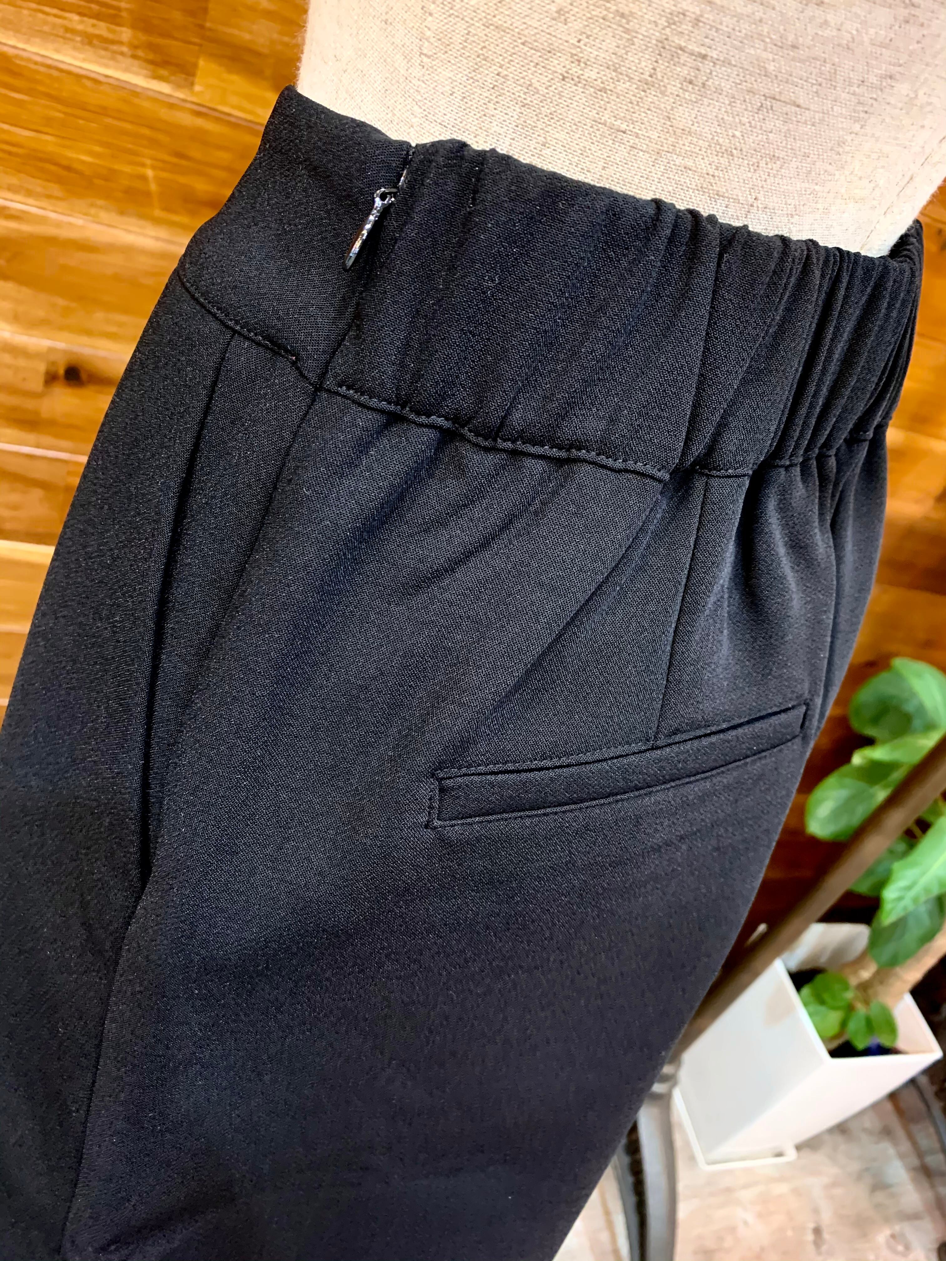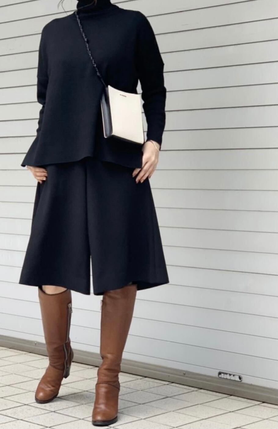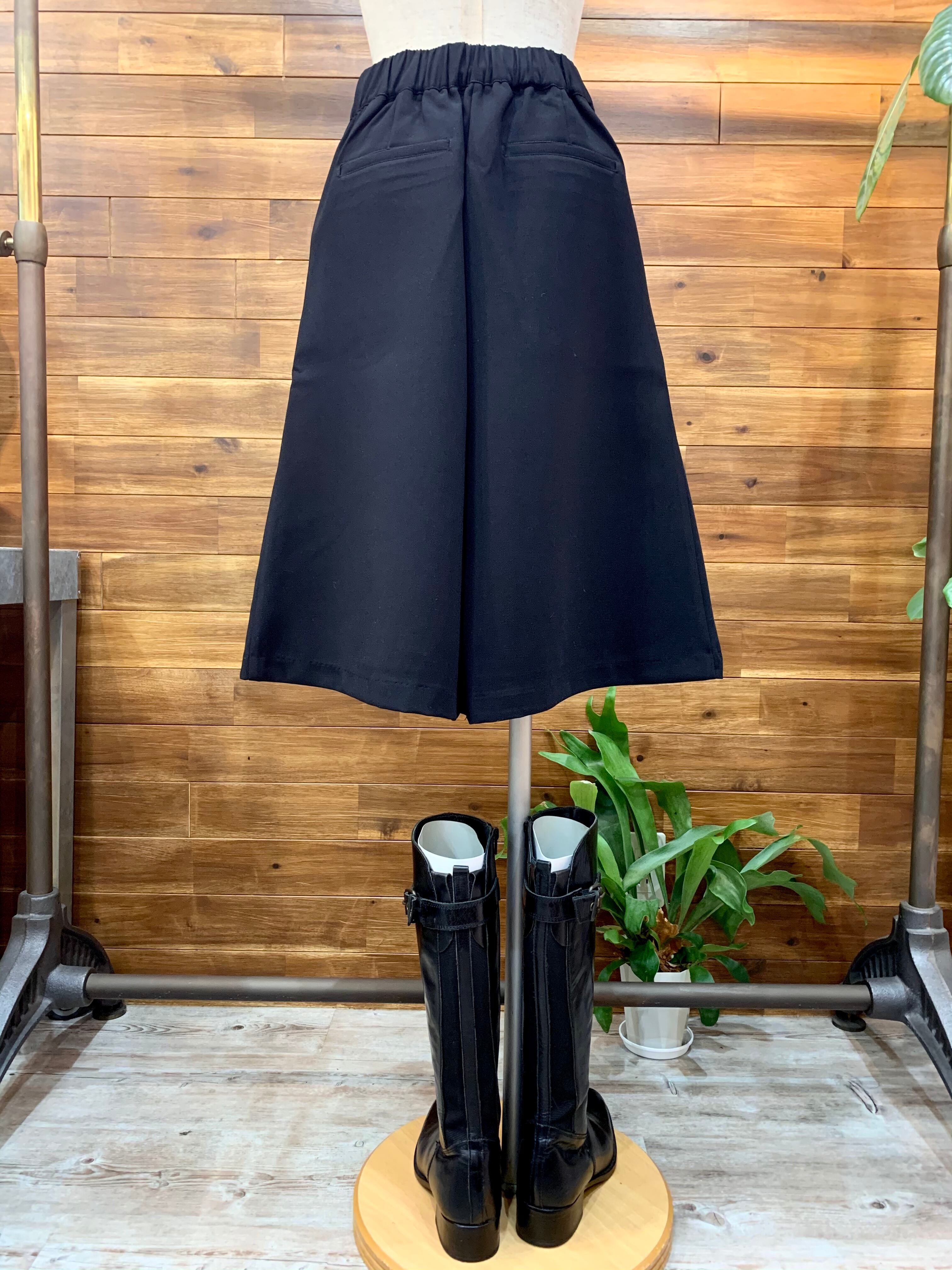 合わせやすくて締まった印象のブラックカラーのフレアハーフパンツはどんなトップスとも相性抜群です◎