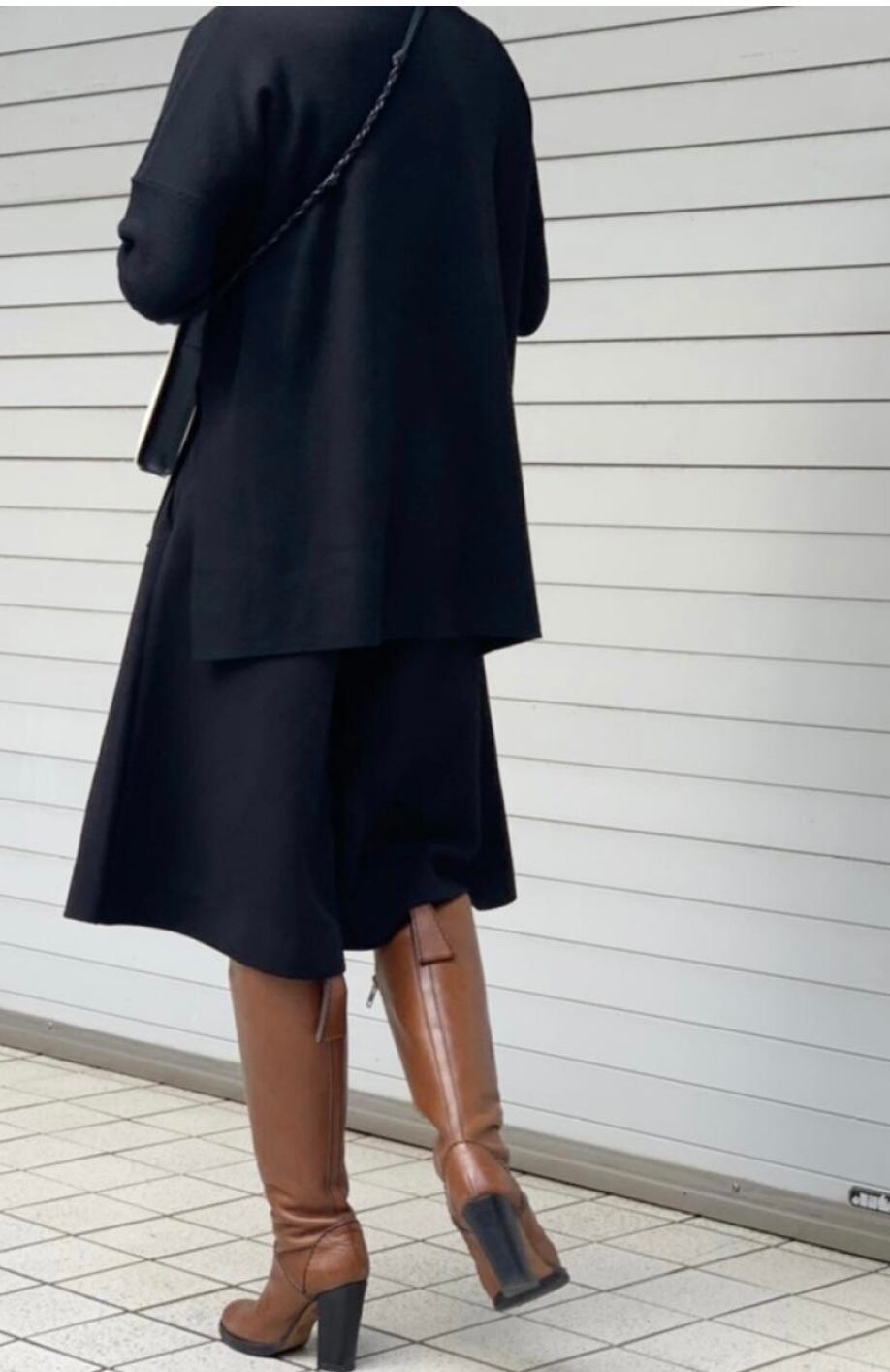 膝が隠れるくらいの着丈感で肌の露出が抑えられるので、短めの着丈が苦手な方にもオススメです◎