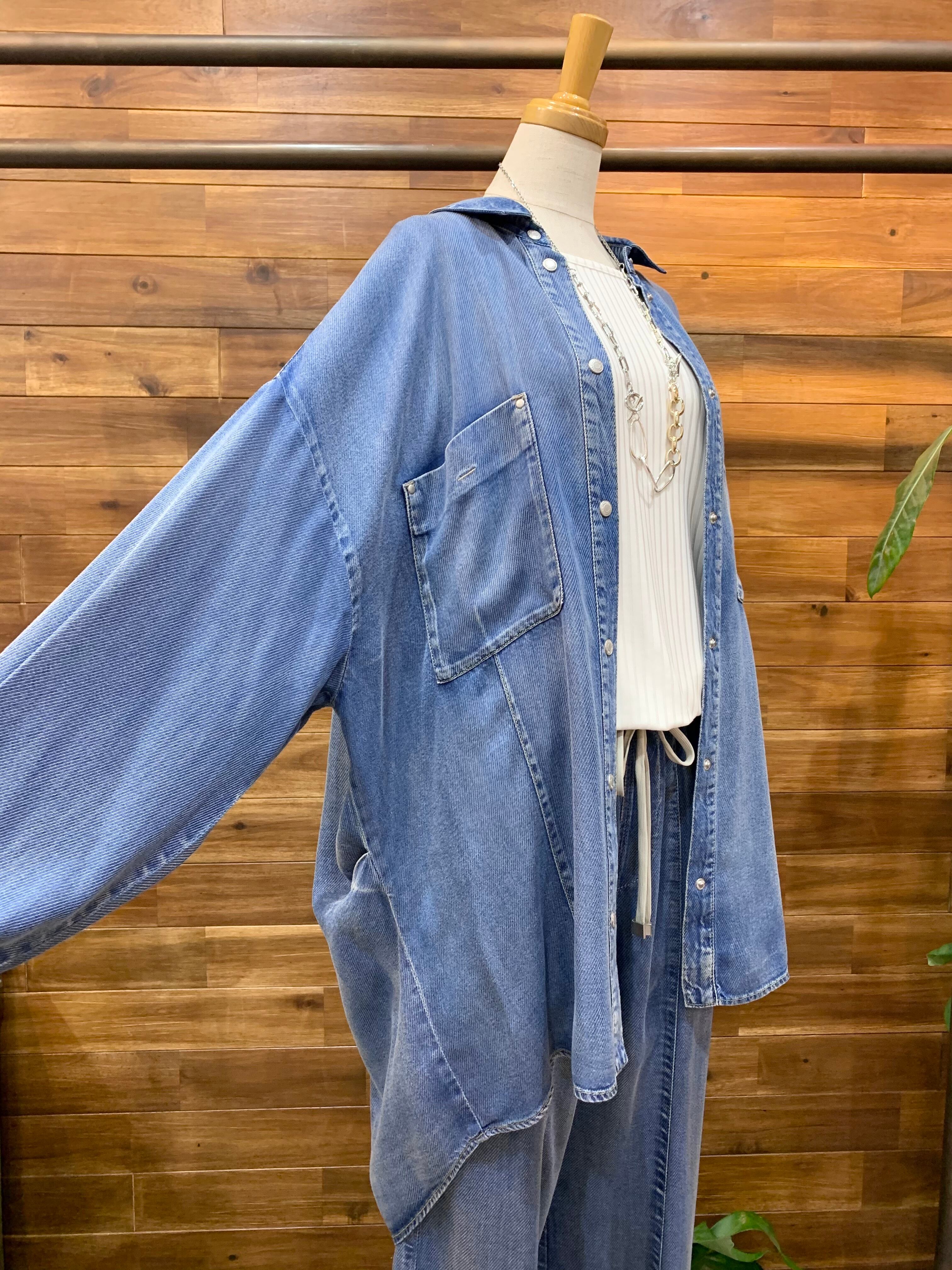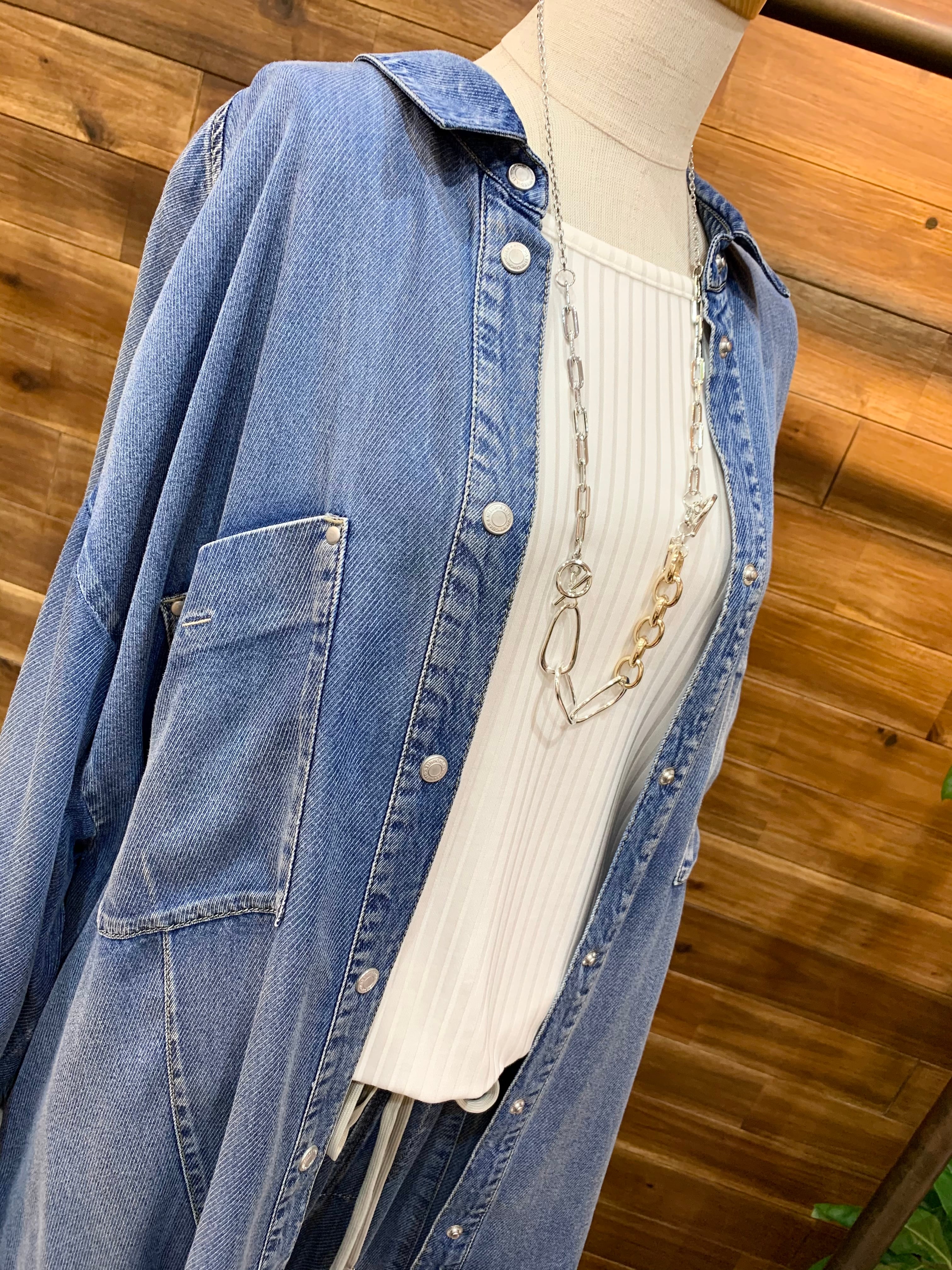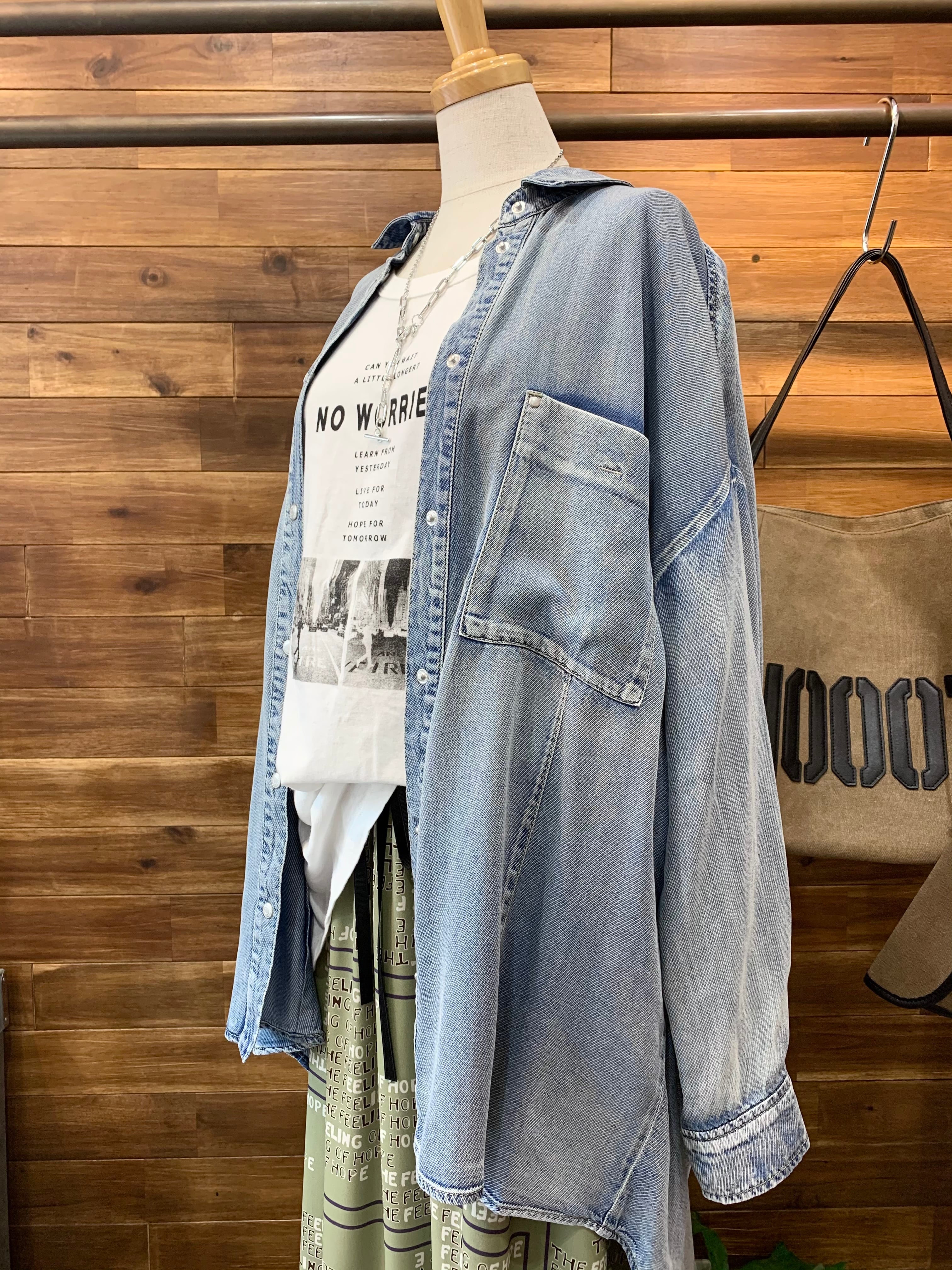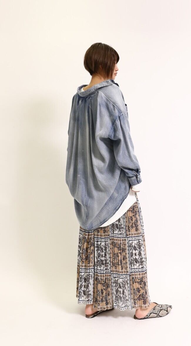 サッと着るだけで、今年らしい抜け感のあるスタイルになるテンセルのゆるシャツ、一枚着としてはもちろん、羽織りとしてもデイリーに活躍してくれそうです◎