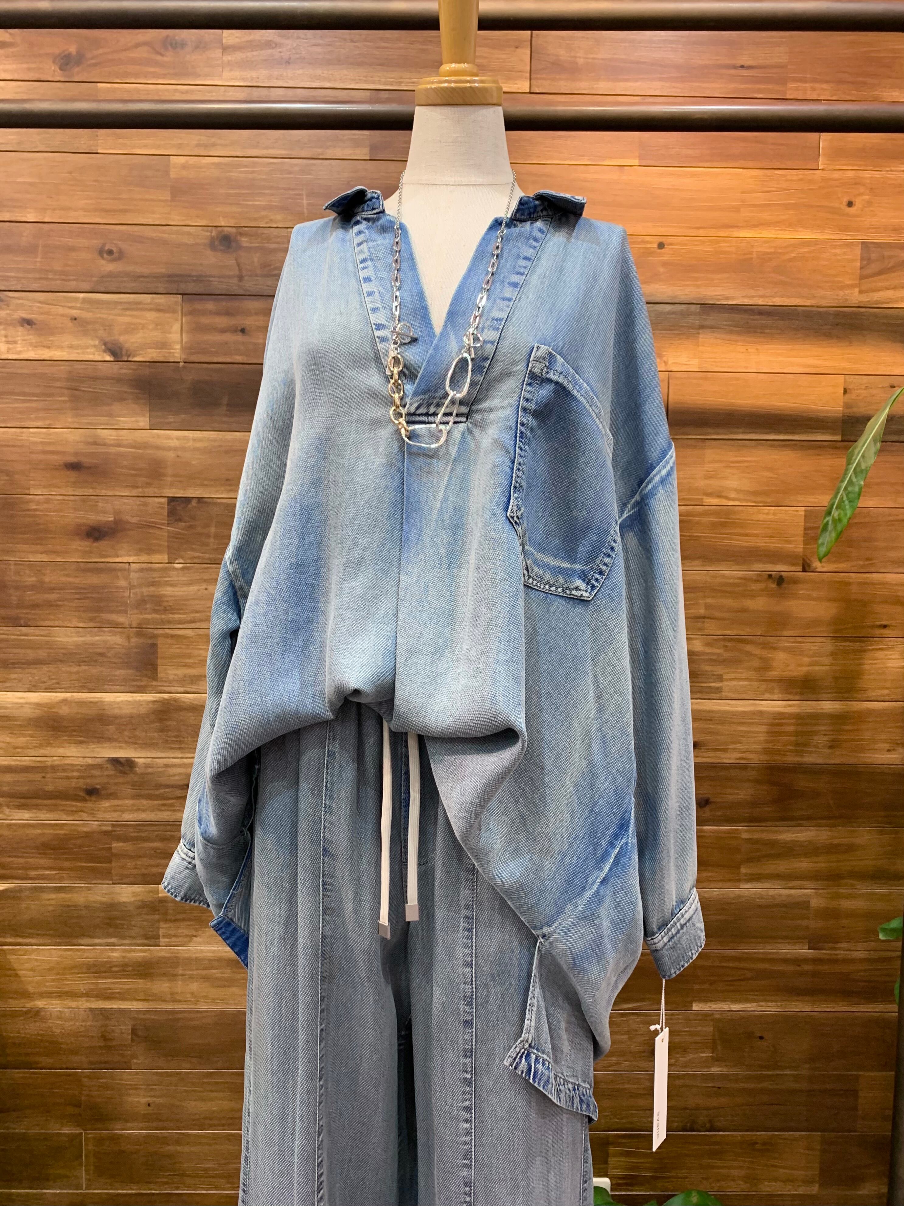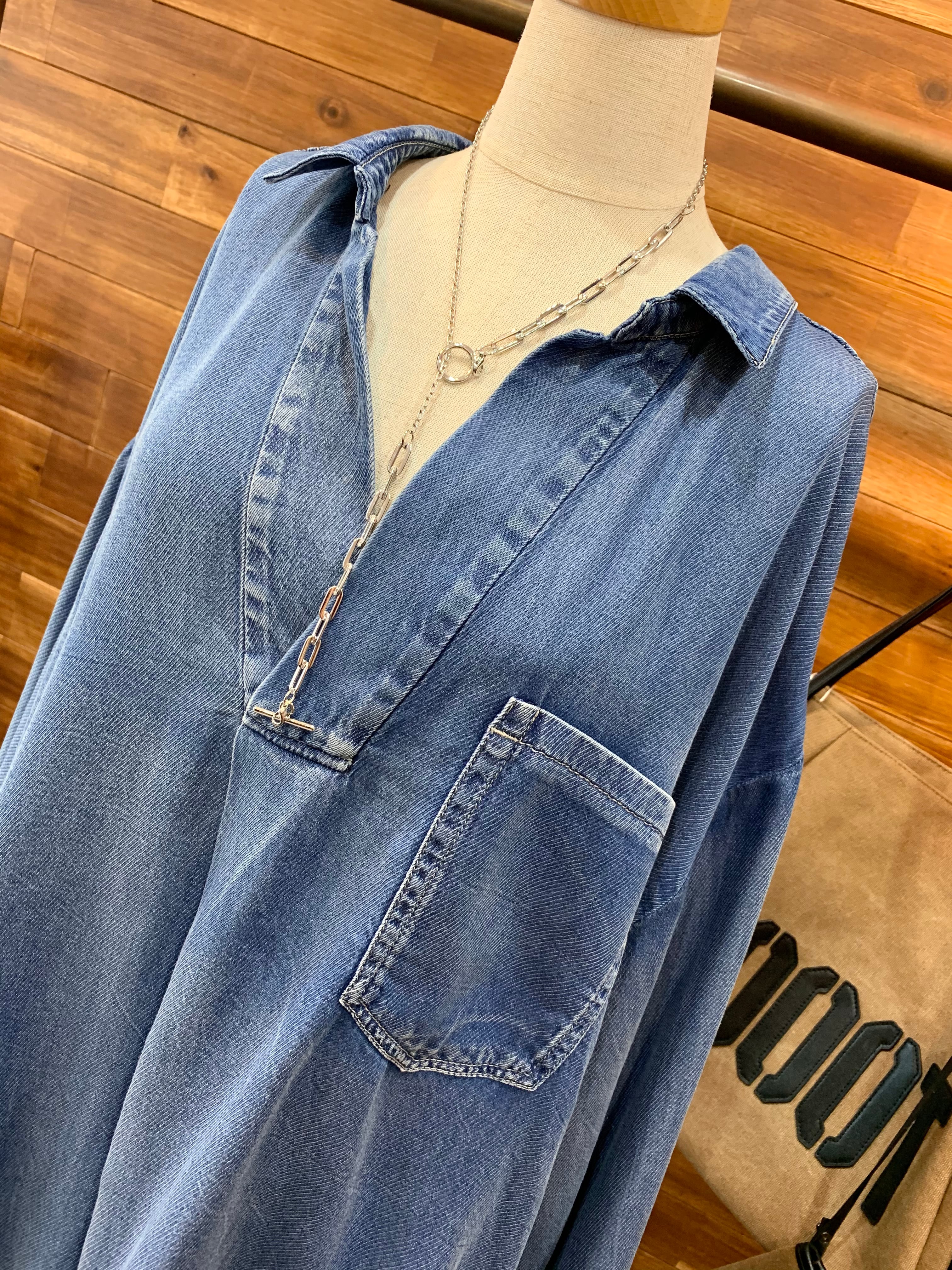 テロテロ落ち感のある、とってもしなやかなテンセル100%の素材がとっても気持ちいいスキッパーシャツ♫