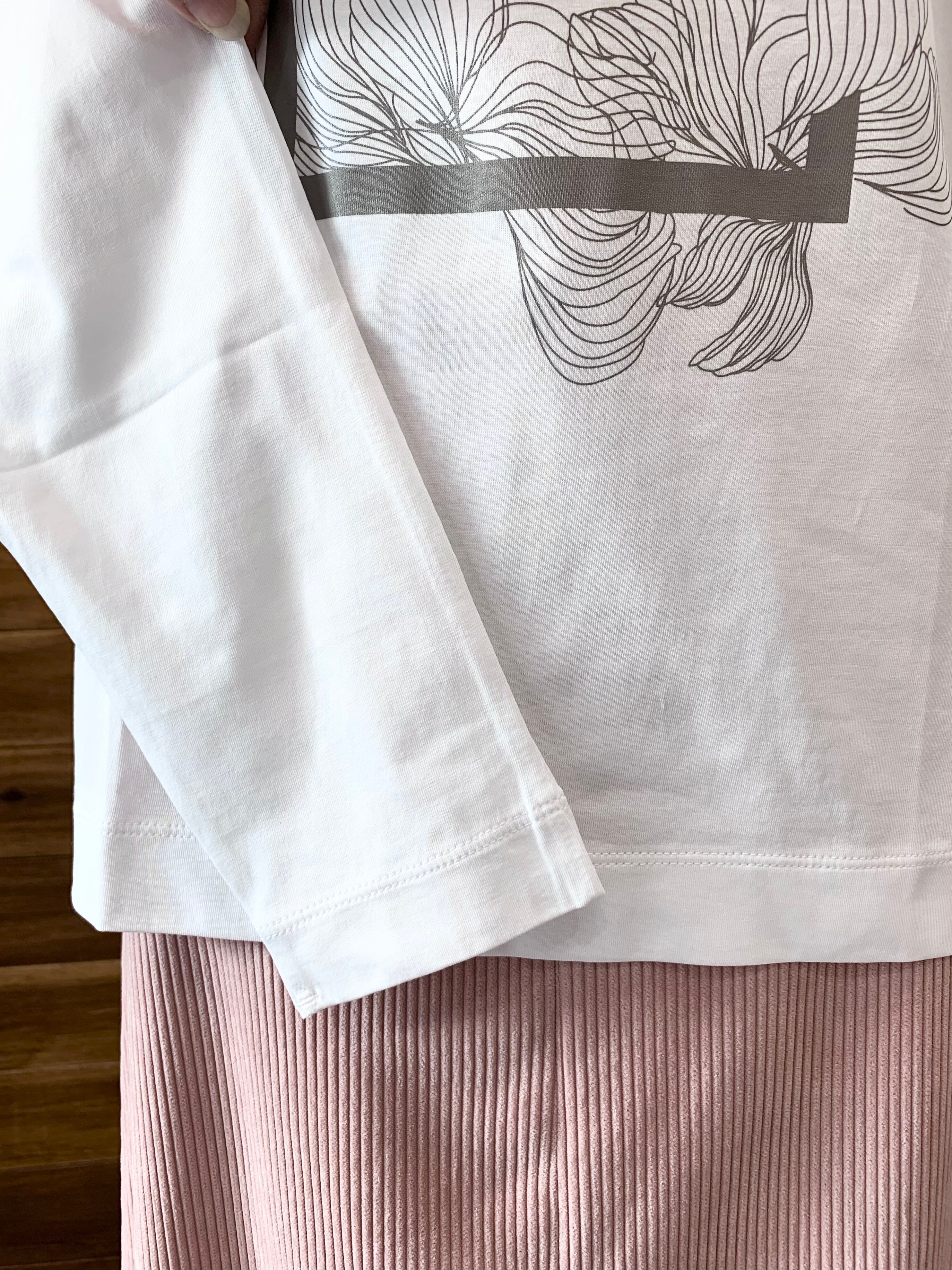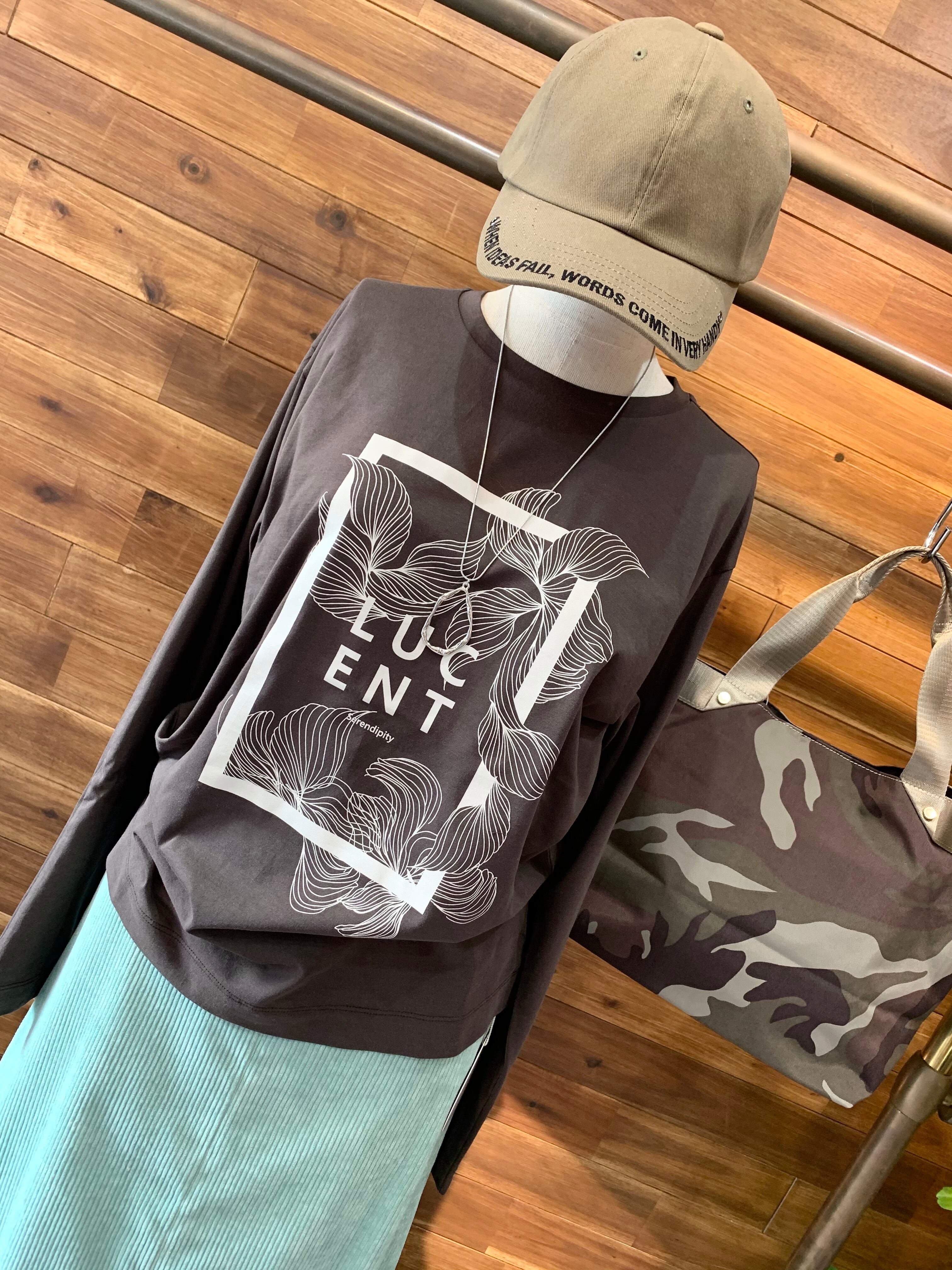 フロントのボタニカルなプリントが、何とも言えず可愛いロンT♡